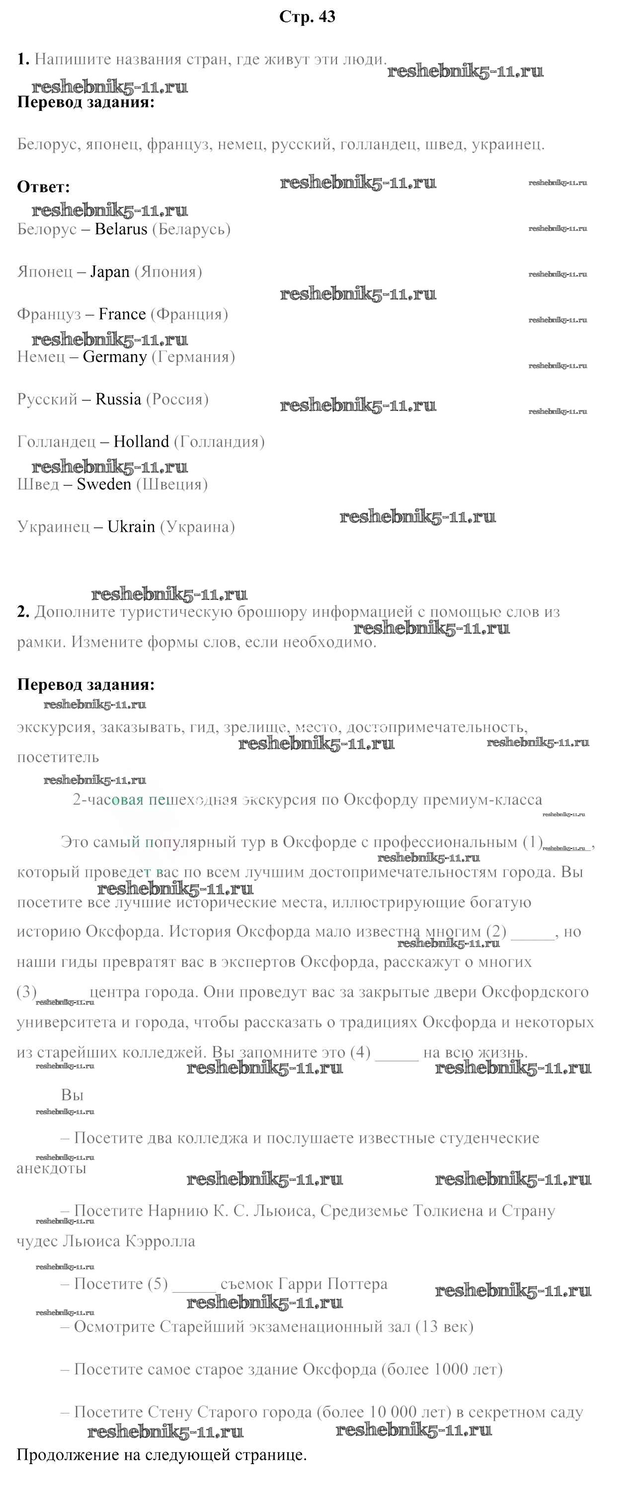 Готовая домашняя работа с ответами по Английскому языку за 7 класс Юхнель, Наумова, Демченко Рабочая тетрадь Часть 1, 2 Аверсэв 2016 ФГОС - Часть 2. Страницы 43