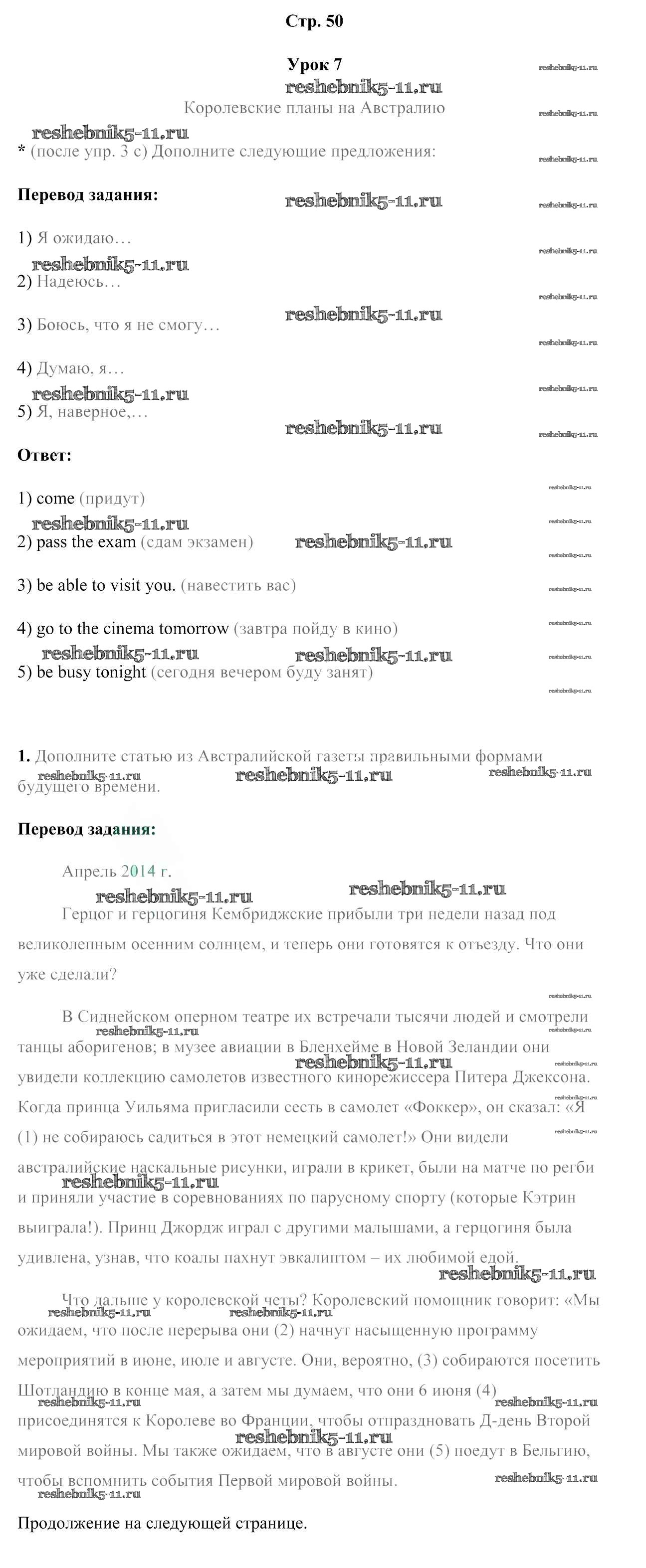 Готовая домашняя работа с ответами по Английскому языку за 7 класс Юхнель, Наумова, Демченко Рабочая тетрадь Часть 1, 2 Аверсэв 2016 ФГОС - Часть 2. Страницы 50