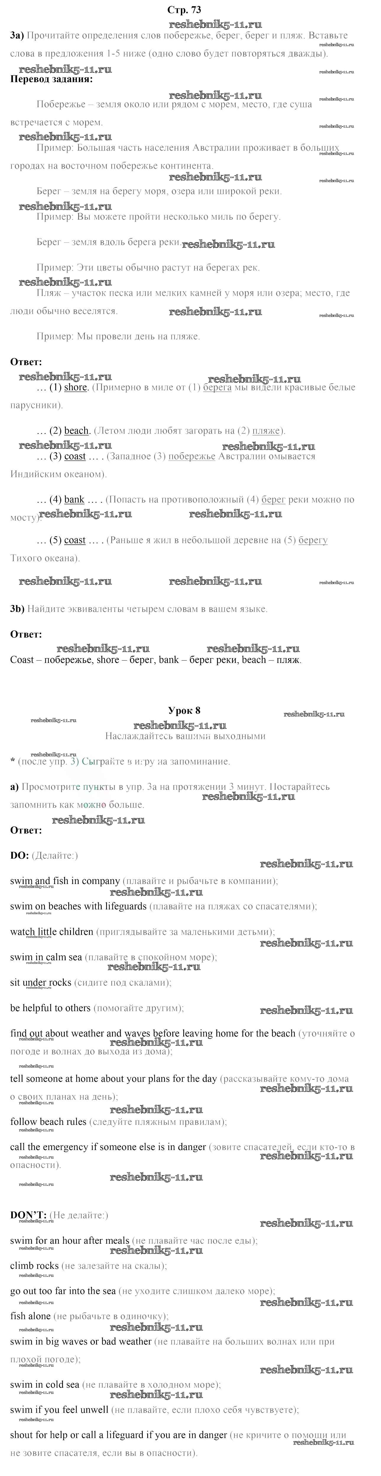 Готовая домашняя работа с ответами по Английскому языку за 7 класс Юхнель, Наумова, Демченко Рабочая тетрадь Часть 1, 2 Аверсэв 2016 ФГОС - Часть 2. Страницы 73