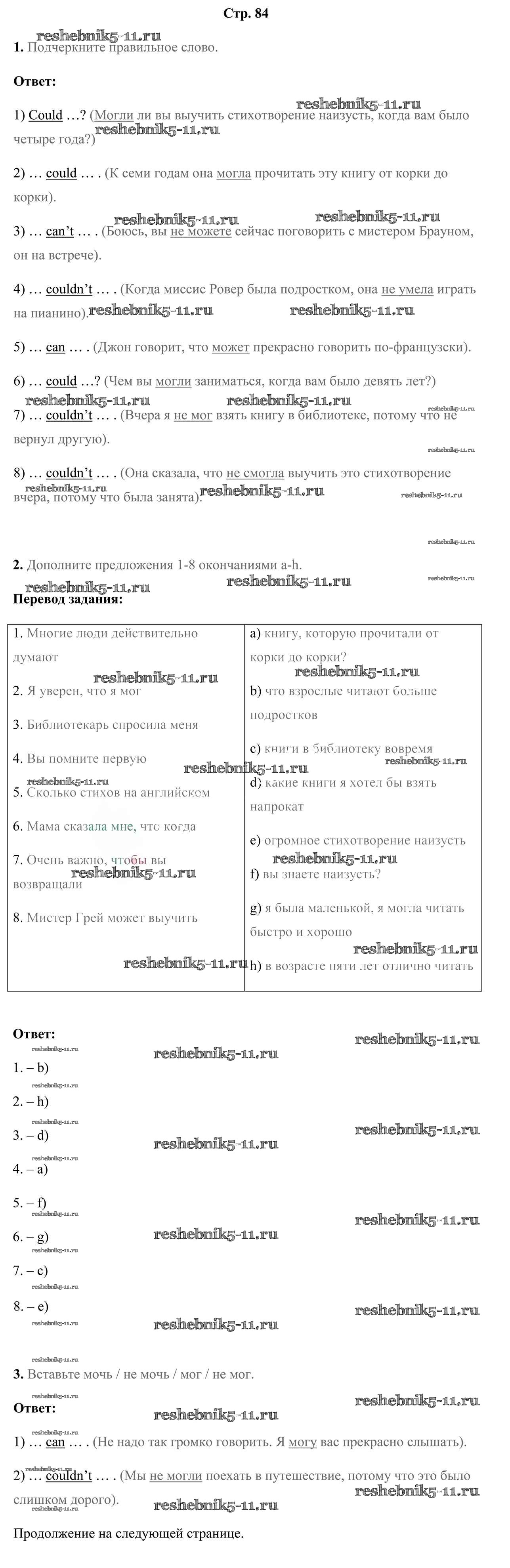 Готовая домашняя работа с ответами по Английскому языку за 7 класс Юхнель, Наумова, Демченко Рабочая тетрадь Часть 1, 2 Аверсэв 2016 ФГОС - Часть 2. Страницы 84