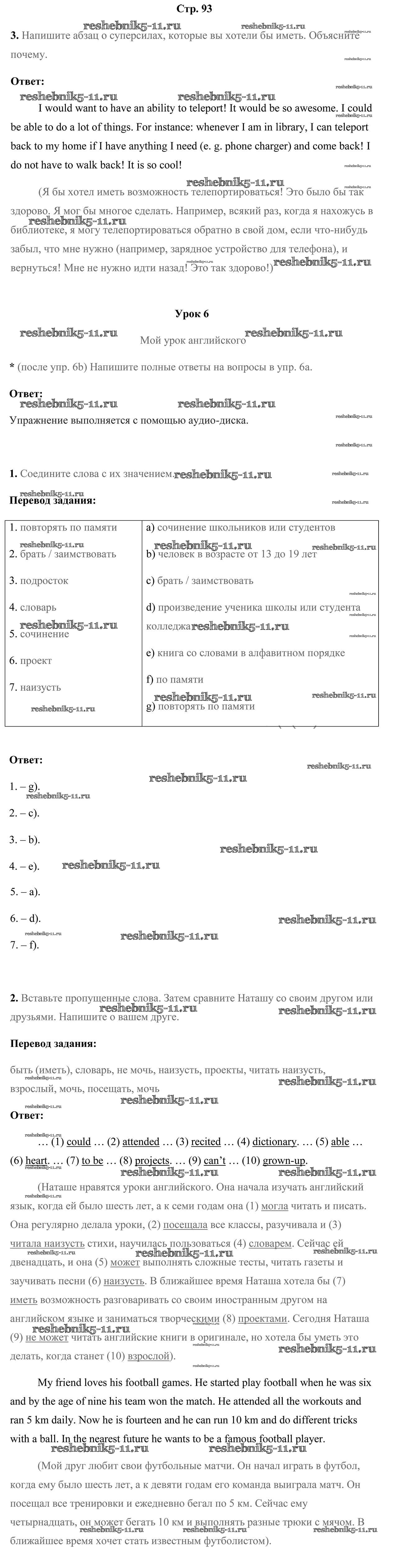 Готовая домашняя работа с ответами по Английскому языку за 7 класс Юхнель, Наумова, Демченко Рабочая тетрадь Часть 1, 2 Аверсэв 2016 ФГОС - Часть 2. Страницы 93