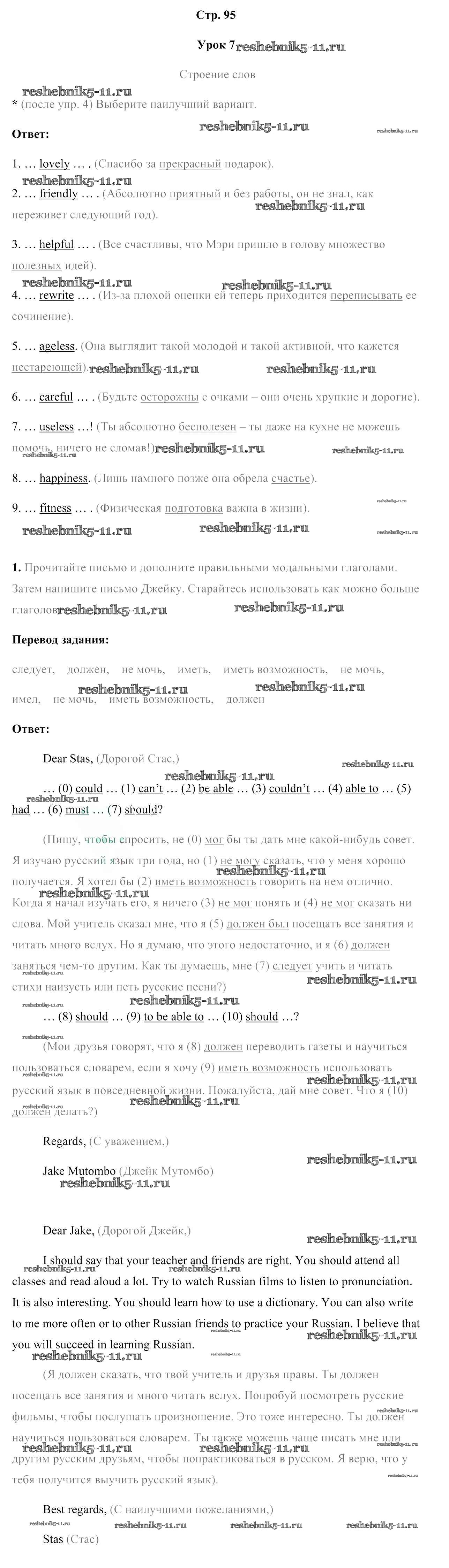 Готовая домашняя работа с ответами по Английскому языку за 7 класс Юхнель, Наумова, Демченко Рабочая тетрадь Часть 1, 2 Аверсэв 2016 ФГОС - Часть 2. Страницы 95