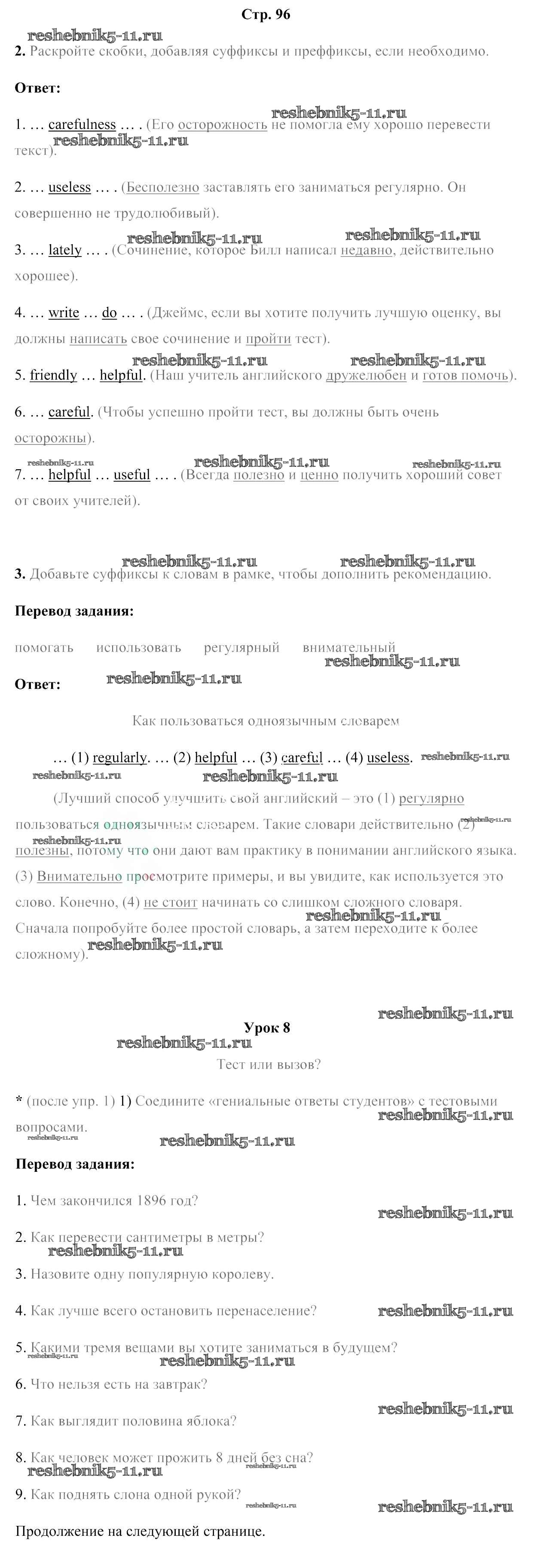 Готовая домашняя работа с ответами по Английскому языку за 7 класс Юхнель, Наумова, Демченко Рабочая тетрадь Часть 1, 2 Аверсэв 2016 ФГОС - Часть 2. Страницы 96