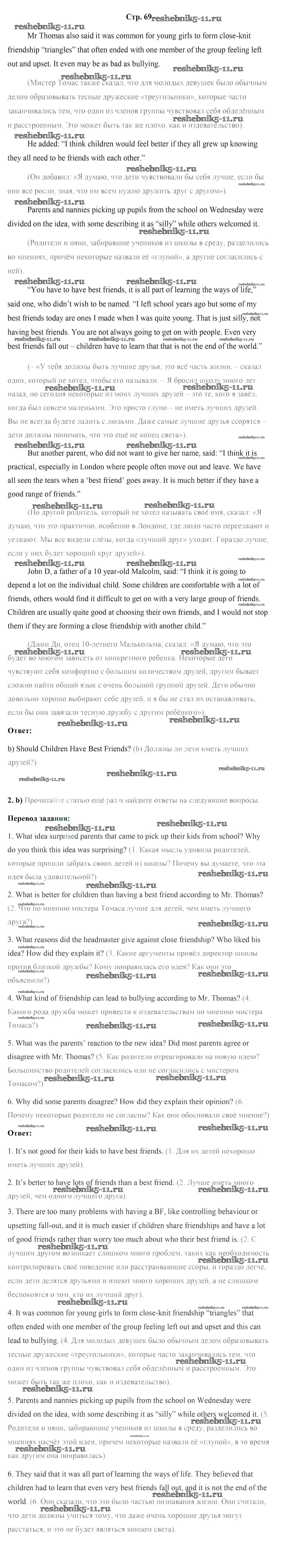 Готовая домашняя работа с ответами по Английскому языку за 7 класс Юхнель, Наумова, Демченко Учебник Высшая школа 2016 ФГОС - Страницы 69