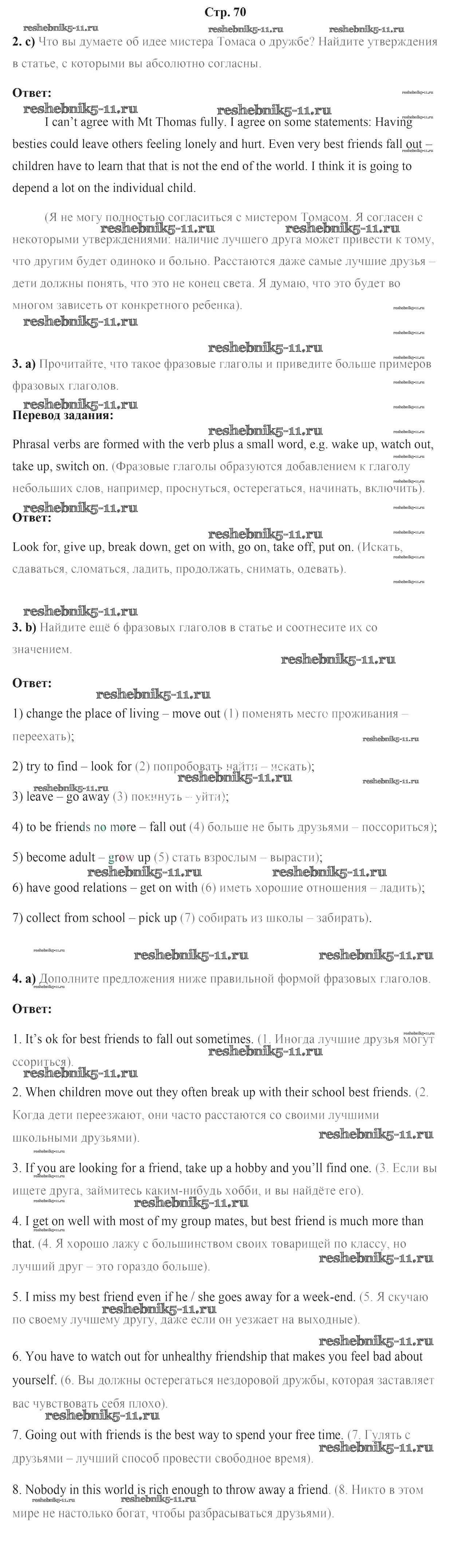 Готовая домашняя работа с ответами по Английскому языку за 7 класс Юхнель, Наумова, Демченко Учебник Высшая школа 2016 ФГОС - Страницы 70