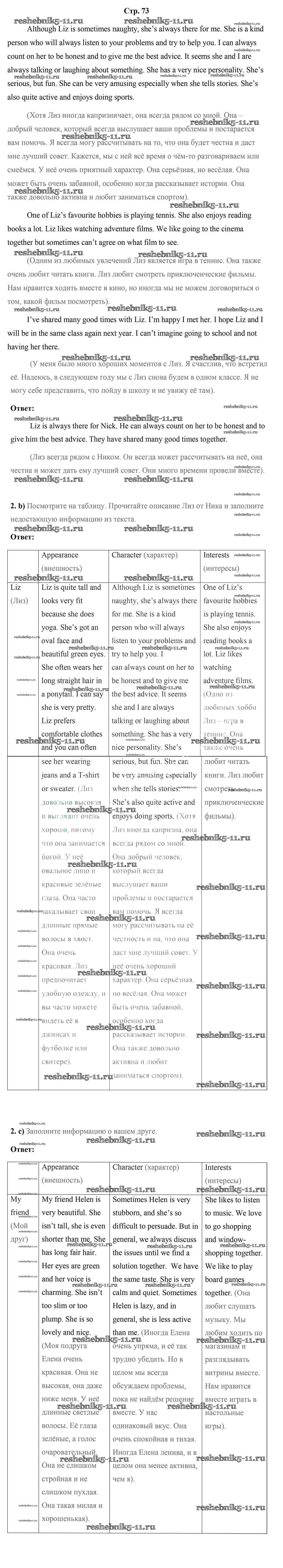 Готовая домашняя работа с ответами по Английскому языку за 7 класс Юхнель, Наумова, Демченко Учебник Высшая школа 2016 ФГОС - Страницы 73