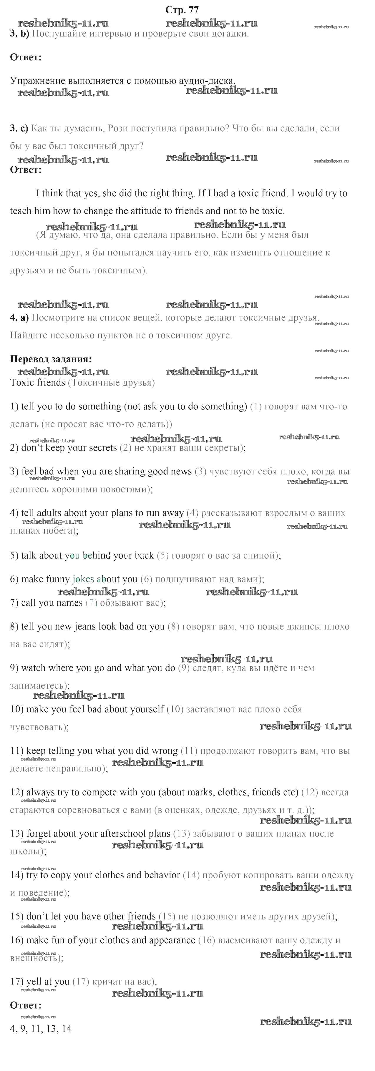 Готовая домашняя работа с ответами по Английскому языку за 7 класс Юхнель, Наумова, Демченко Учебник Высшая школа 2016 ФГОС - Страницы 77