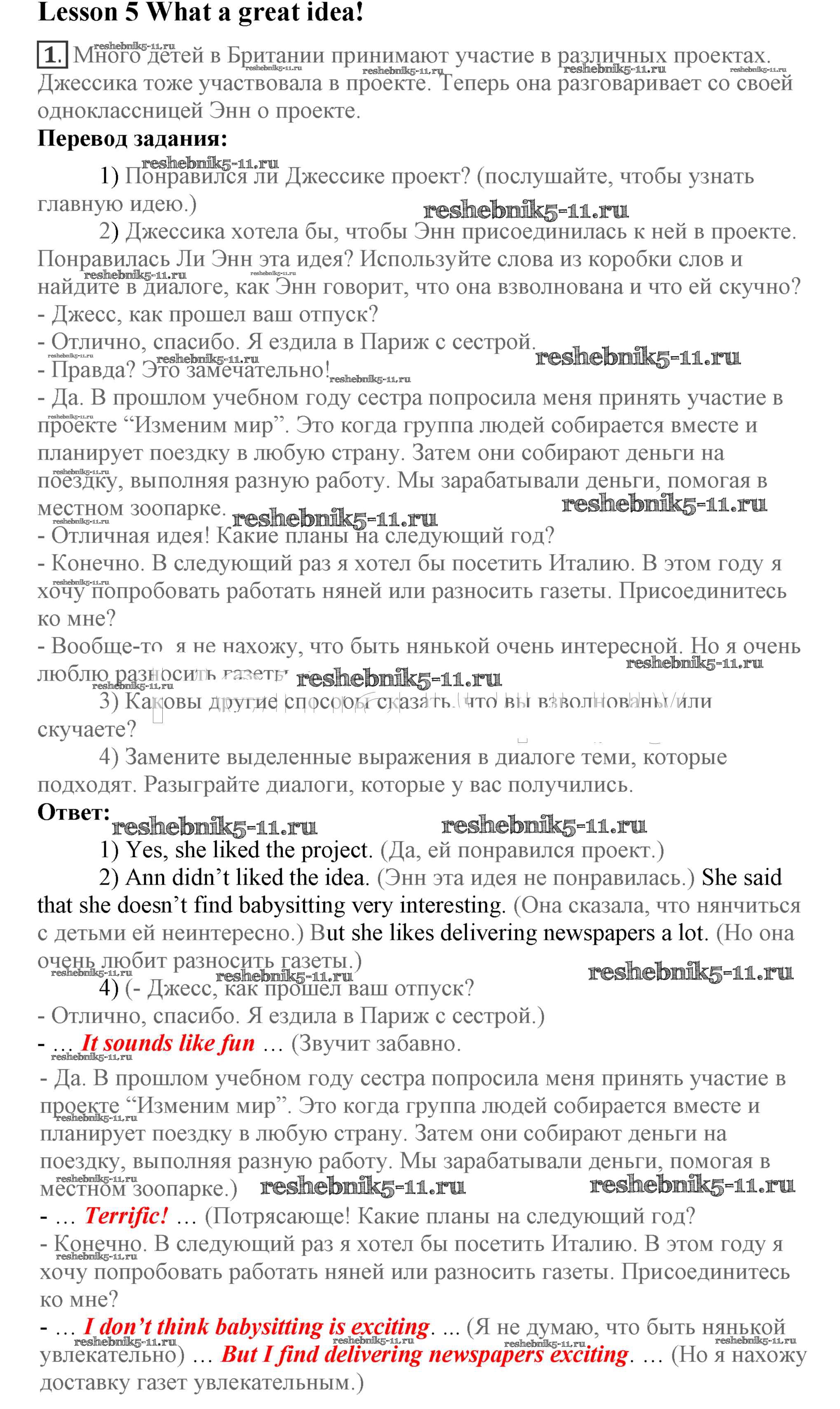 Готовая домашняя работа с ответами по Английскому языку за 7 класс Кузовлев, Лапа, Перегудова Учебник УМК Просвещение 2015 ФГОС - Lesson 5 1