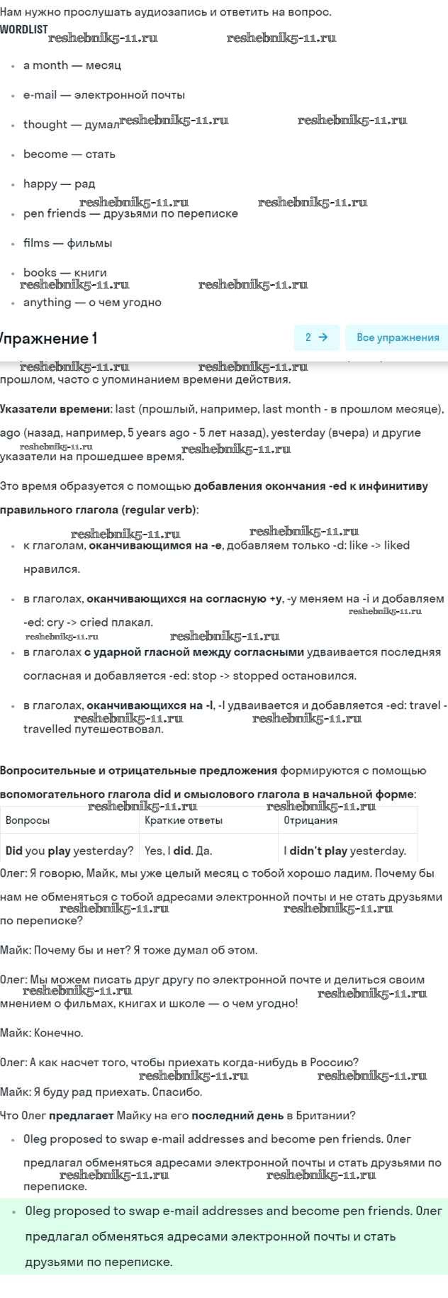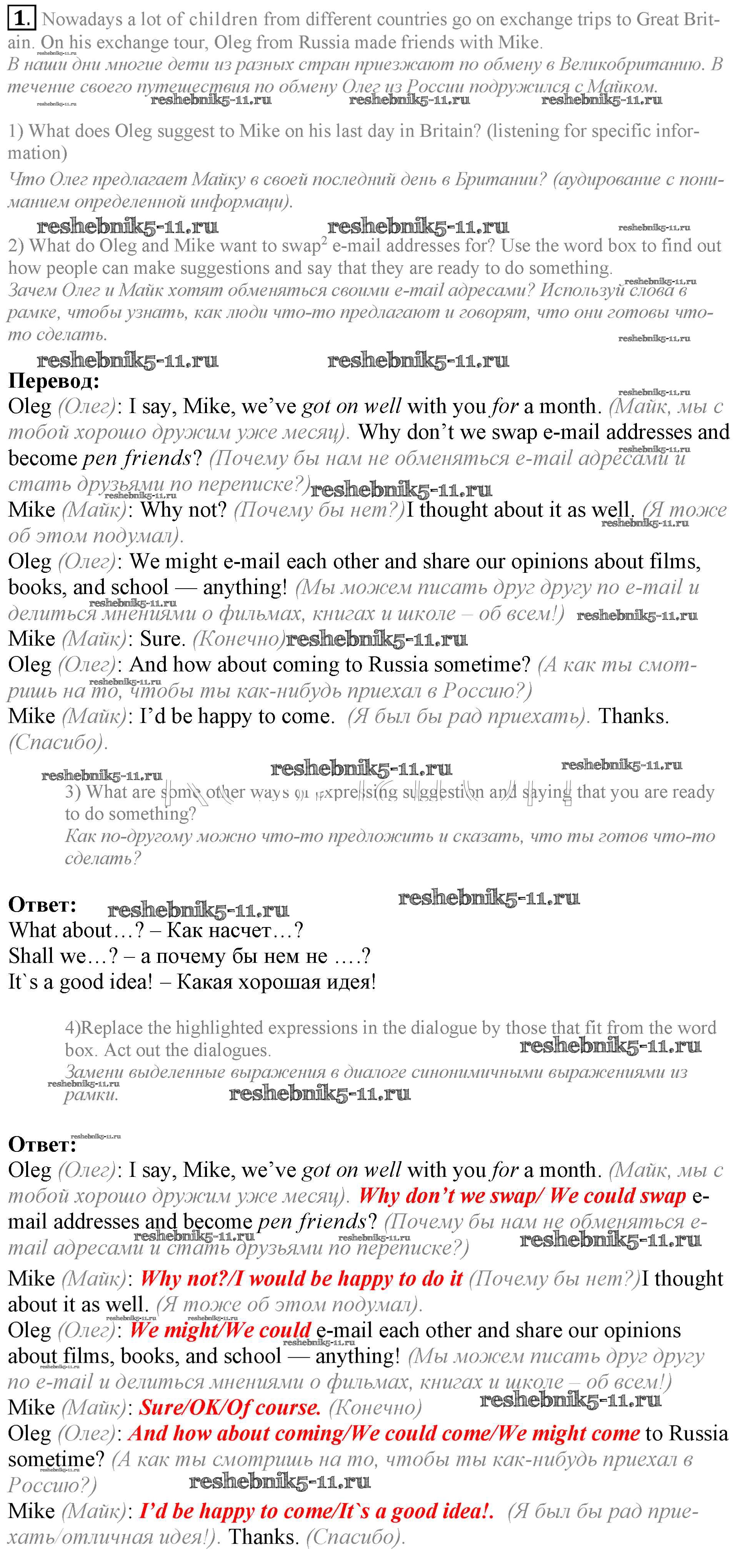 Готовая домашняя работа с ответами по Английскому языку за 7 класс Кузовлев, Лапа, Перегудова Учебник УМК Просвещение 2015 ФГОС - Lesson 5 1