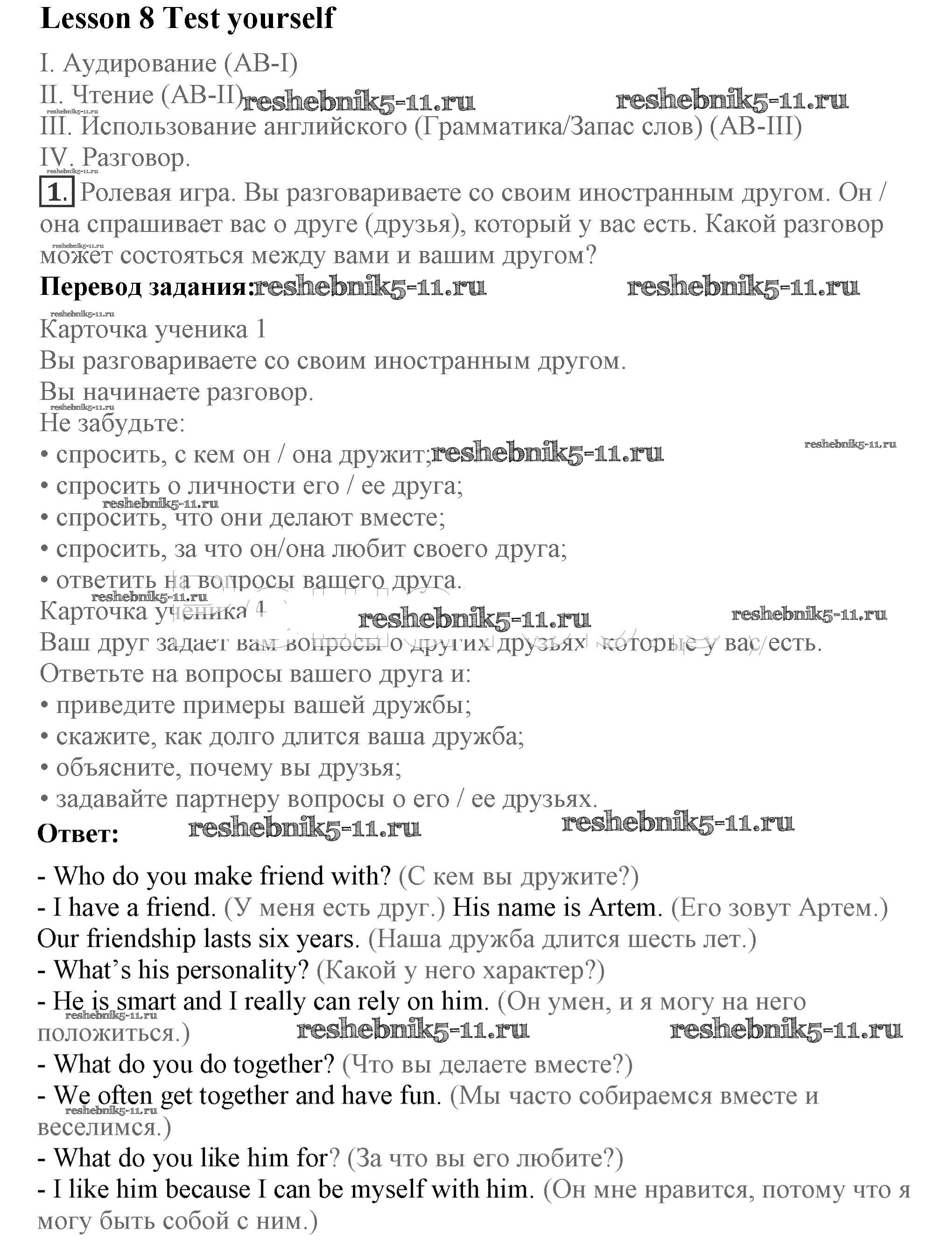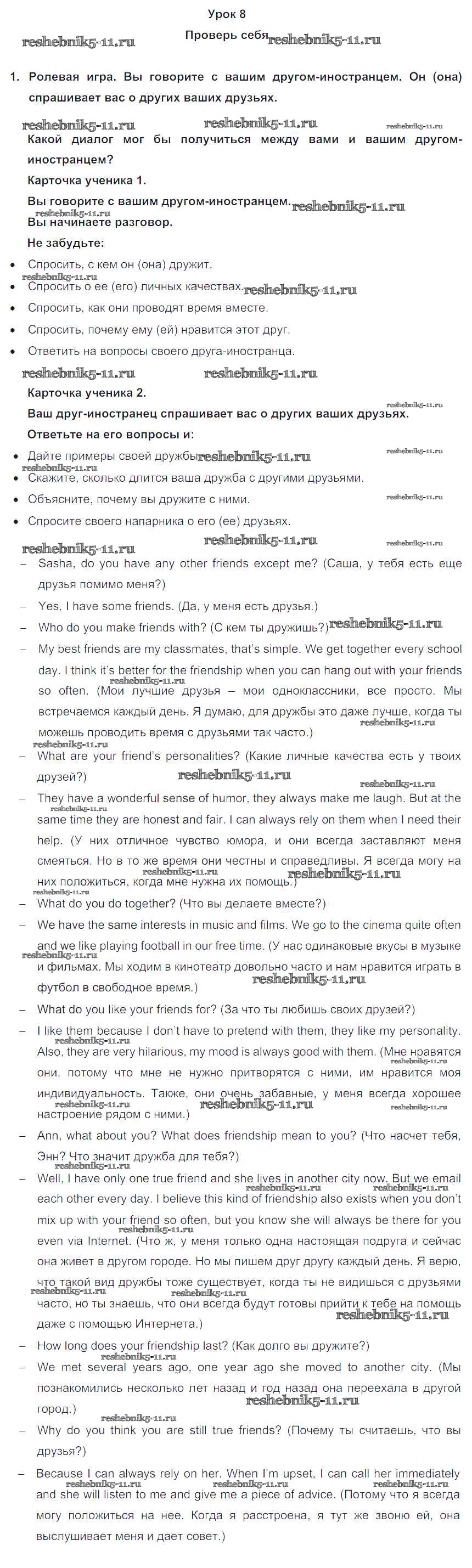 Готовая домашняя работа с ответами по Английскому языку за 7 класс Кузовлев, Лапа, Перегудова Учебник УМК Просвещение 2015 ФГОС - Lesson 8 1