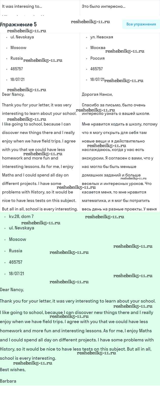 Готовая домашняя работа с ответами по Английскому языку за 7 класс Кузовлев, Лапа, Перегудова Учебник УМК Просвещение 2015 ФГОС - Lesson 4 5