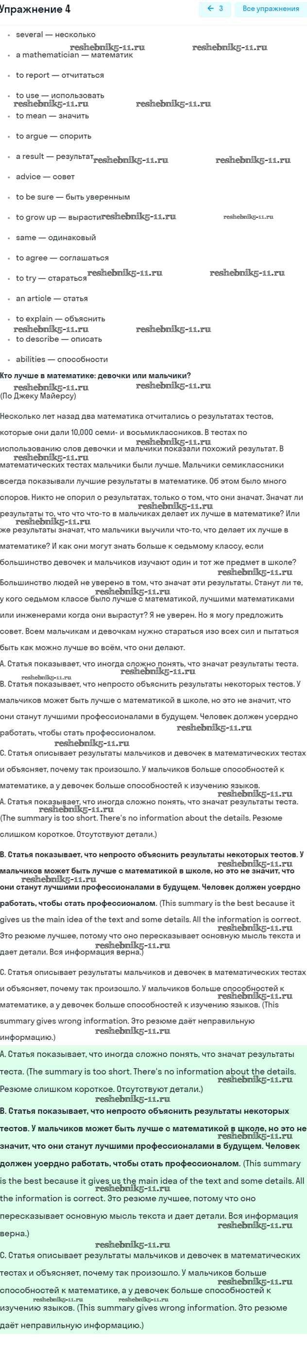 Готовая домашняя работа с ответами по Английскому языку за 7 класс Кузовлев, Лапа, Перегудова Учебник УМК Просвещение 2015 ФГОС - Lesson 1 4