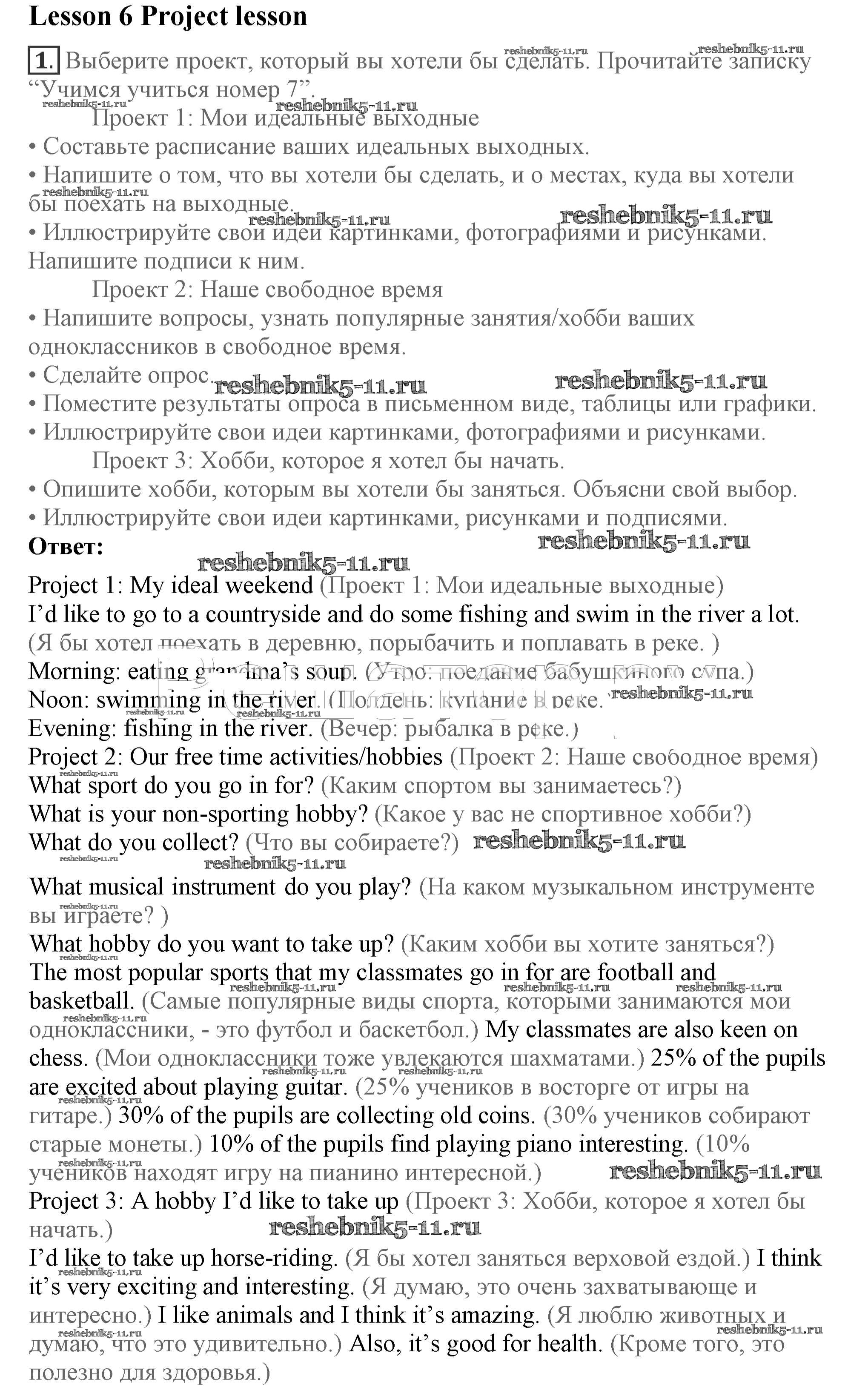 Готовая домашняя работа с ответами по Английскому языку за 7 класс Кузовлев, Лапа, Перегудова Учебник УМК Просвещение 2015 ФГОС - Lesson 6 1