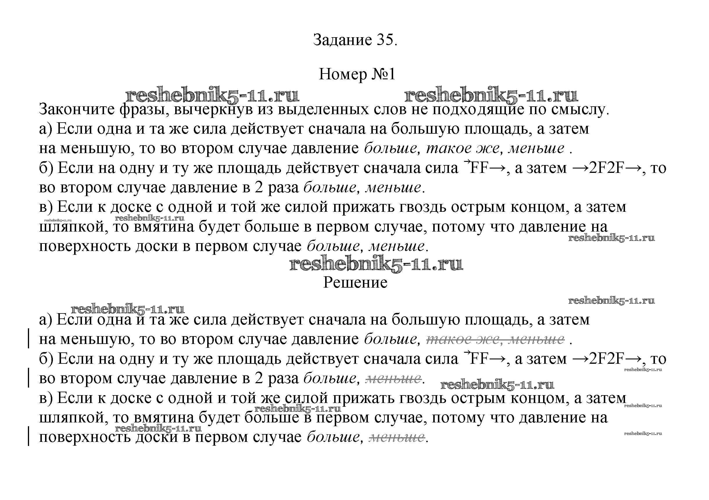 Готовая домашняя работа с ответами по Физике за 7 класс Ханнанова, Ханнанов Рабочая тетрадь Вертикаль Дрофа 2016 ФГОС - Задание 35 1