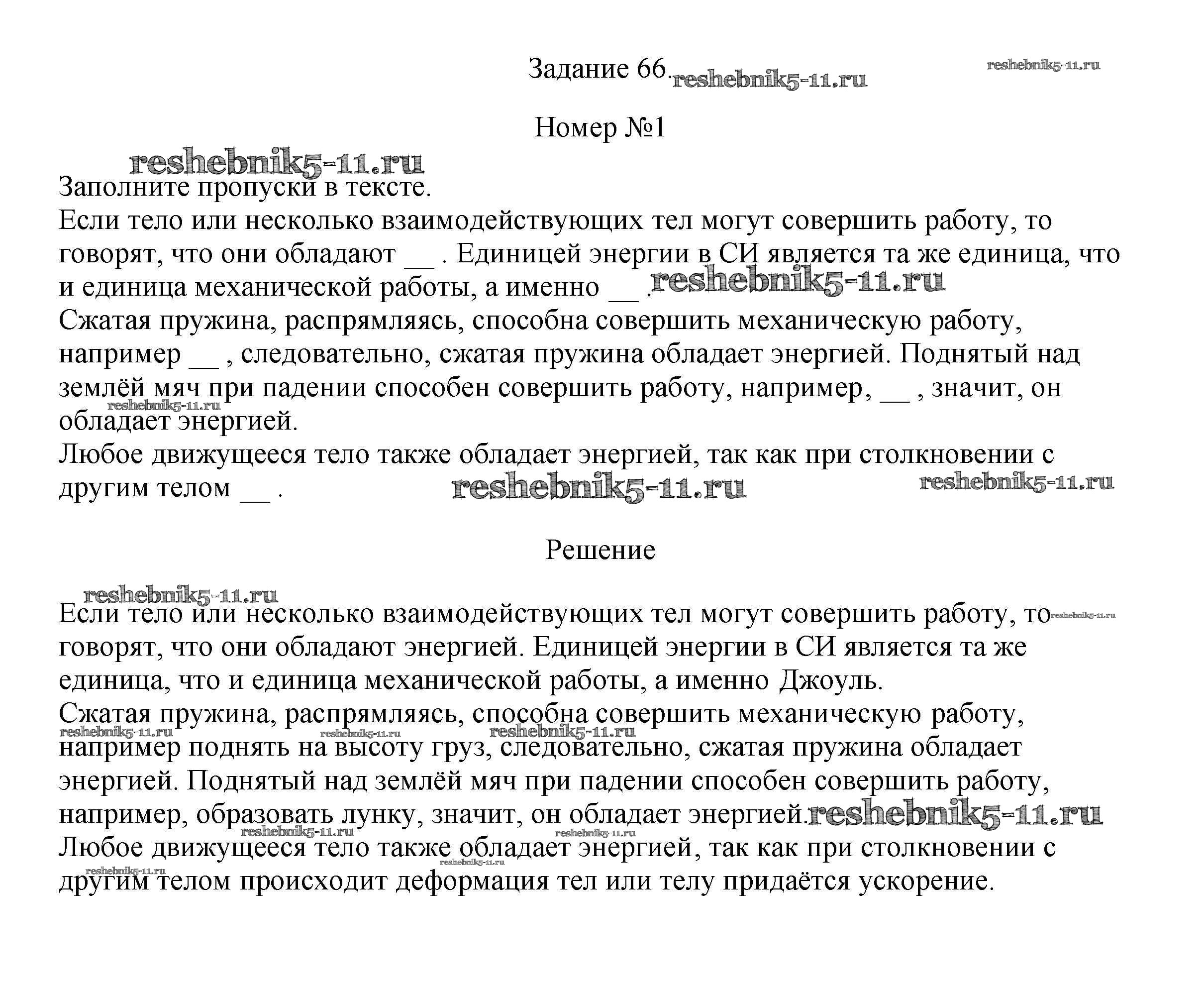 Готовая домашняя работа с ответами по Физике за 7 класс Ханнанова, Ханнанов Рабочая тетрадь Вертикаль Дрофа 2016 ФГОС - Задание 66 1