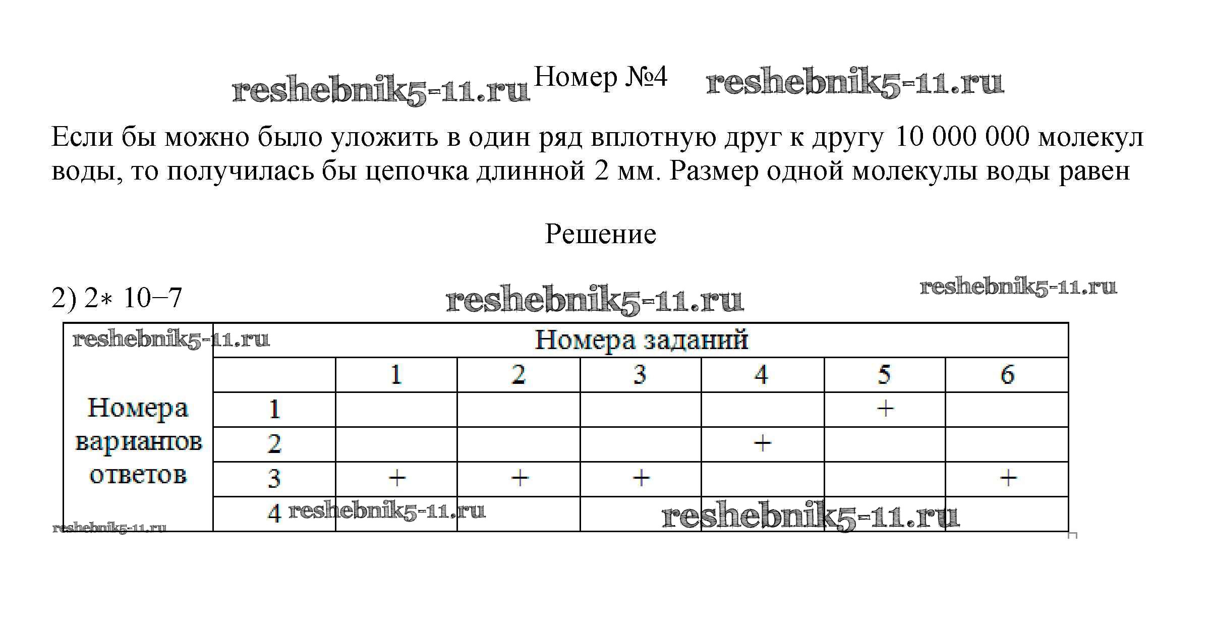 Готовая домашняя работа с ответами по Физике за 7 класс Ханнанова, Ханнанов Рабочая тетрадь Вертикаль Дрофа 2016 ФГОС - Тренировочный тест 1 "Строение вещества" 4