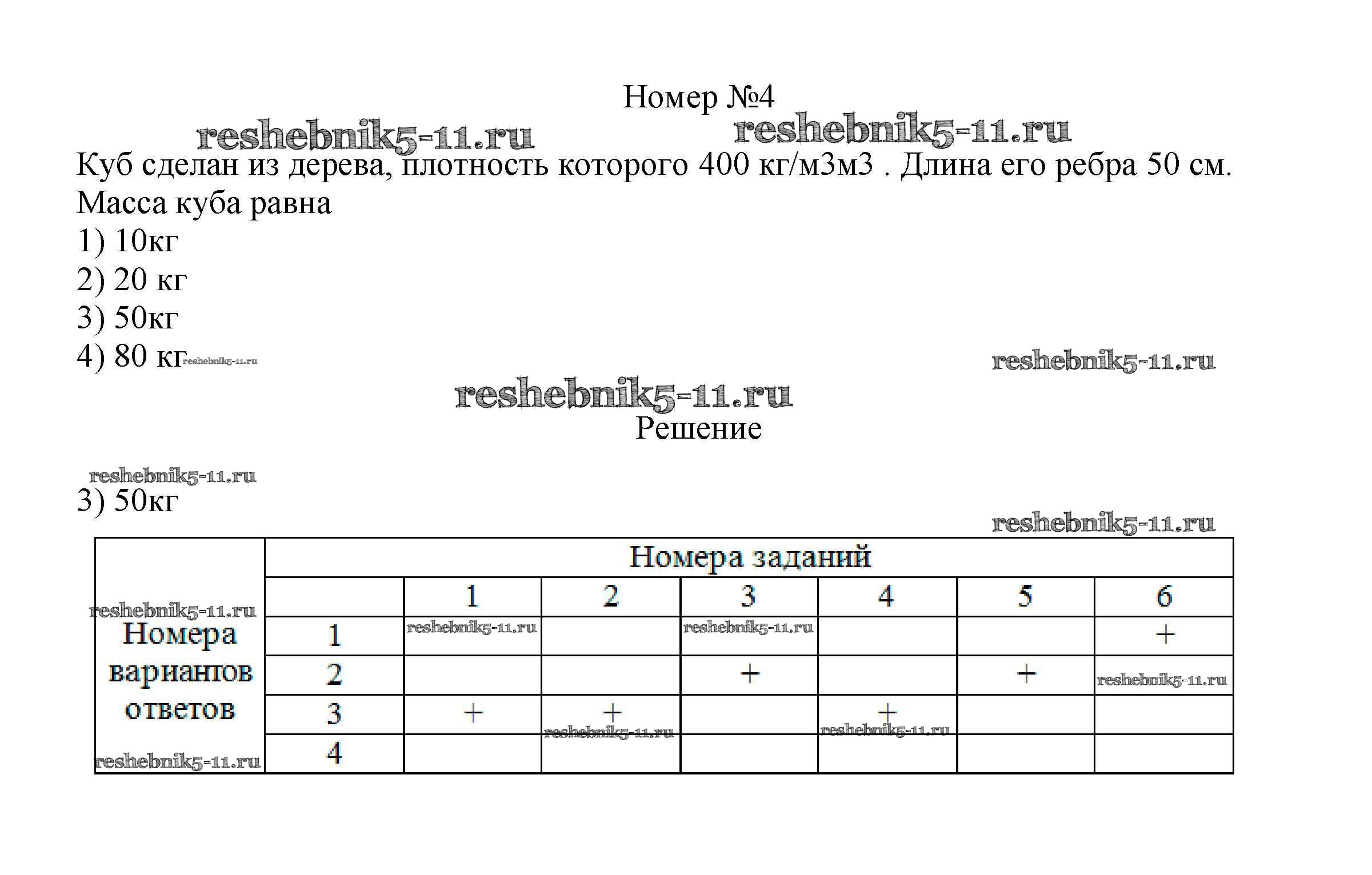 Готовая домашняя работа с ответами по Физике за 7 класс Ханнанова, Ханнанов Рабочая тетрадь Вертикаль Дрофа 2016 ФГОС - Тренировочный тест 3 "Масса и плотность" 4