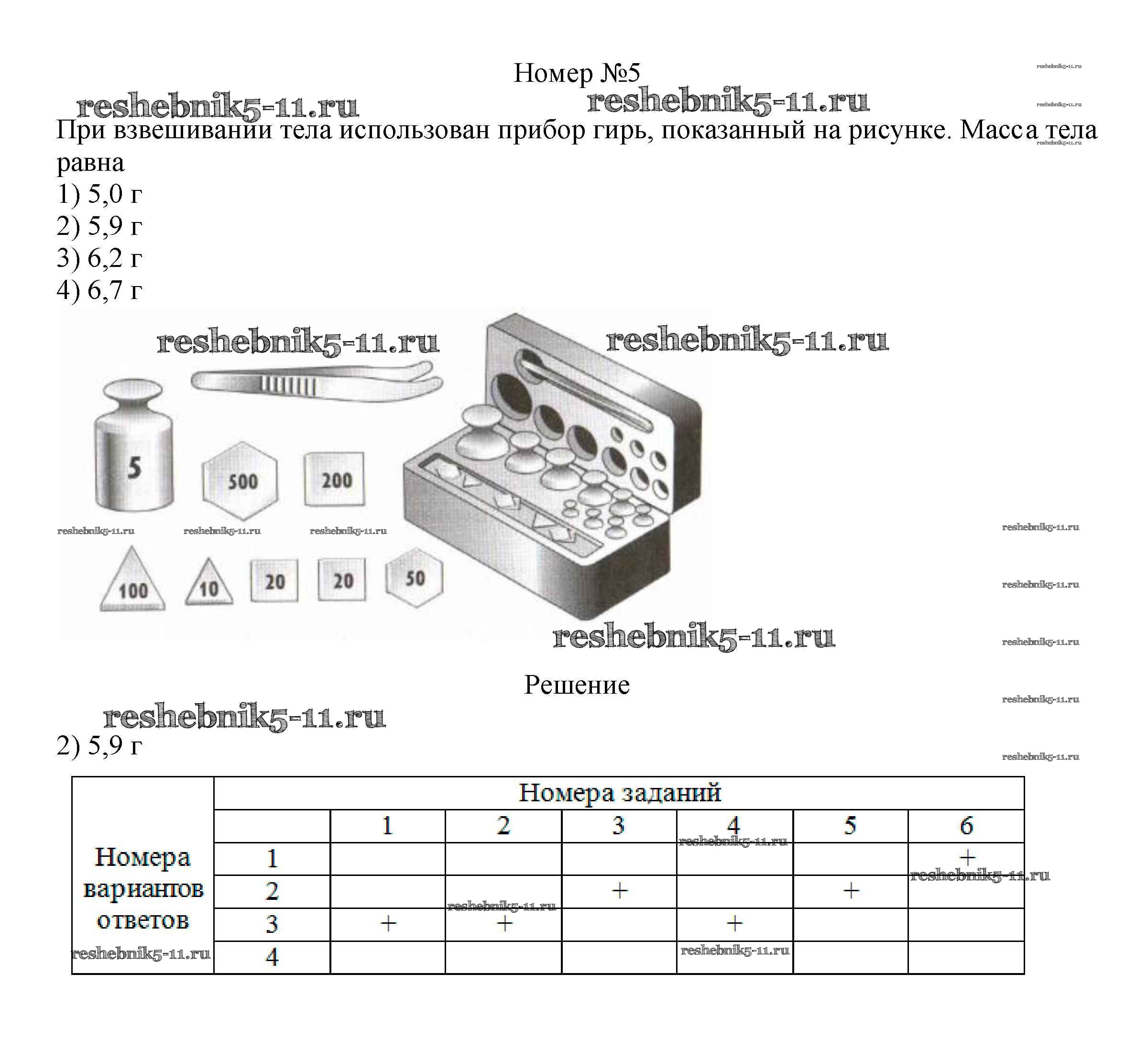 Готовая домашняя работа с ответами по Физике за 7 класс Ханнанова, Ханнанов Рабочая тетрадь Вертикаль Дрофа 2016 ФГОС - Тренировочный тест 3 "Масса и плотность" 5