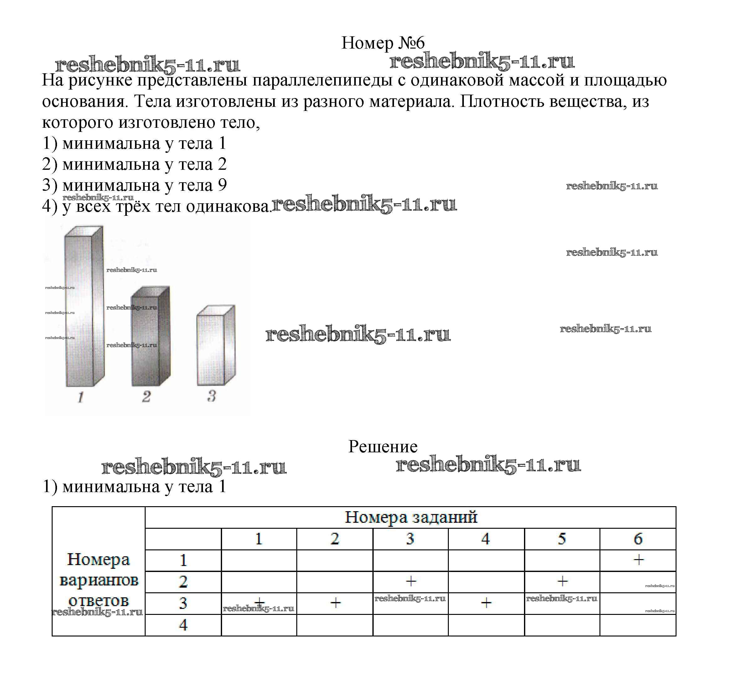 Готовая домашняя работа с ответами по Физике за 7 класс Ханнанова, Ханнанов Рабочая тетрадь Вертикаль Дрофа 2016 ФГОС - Тренировочный тест 3 "Масса и плотность" 6