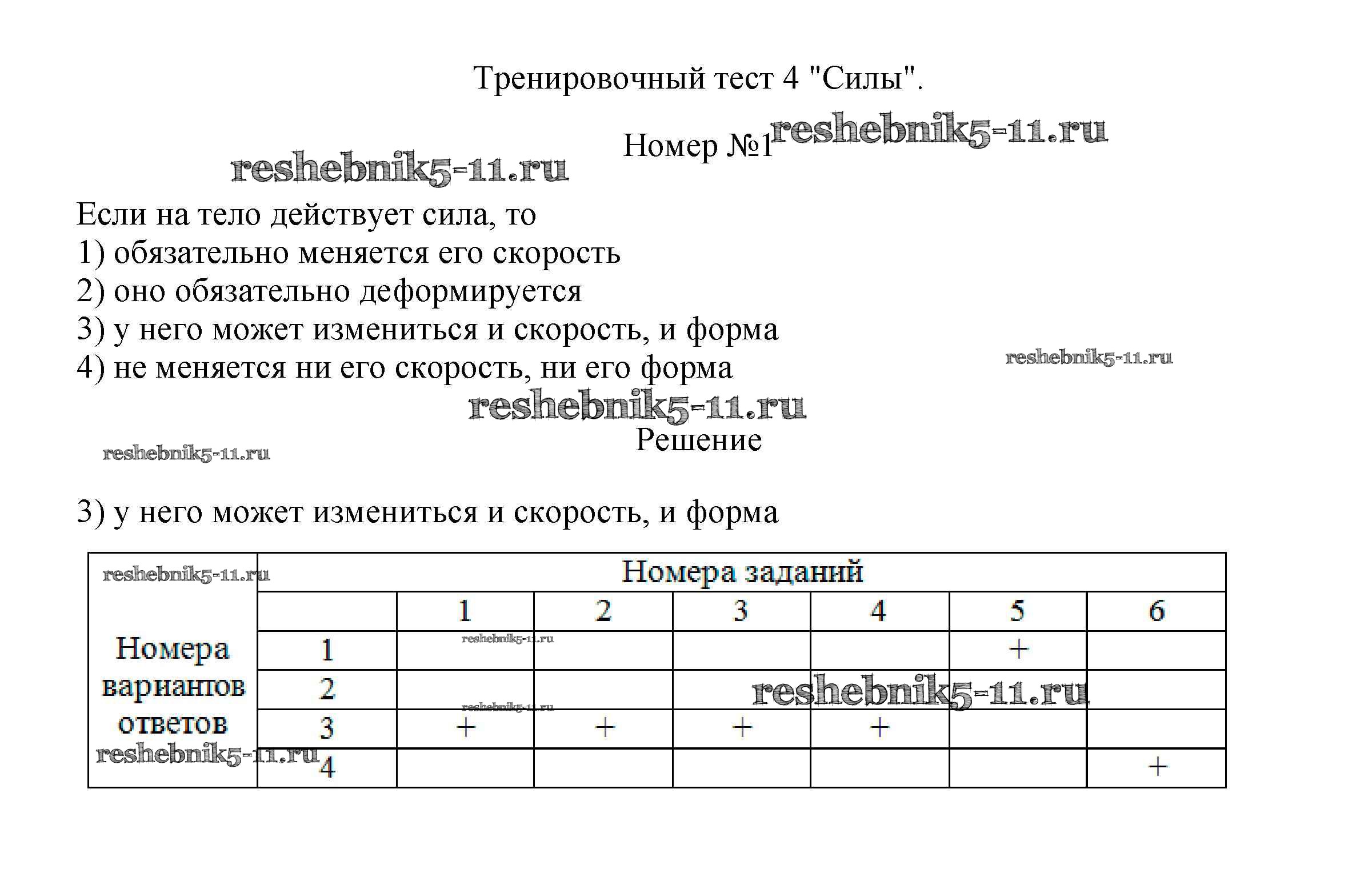 Готовая домашняя работа с ответами по Физике за 7 класс Ханнанова, Ханнанов Рабочая тетрадь Вертикаль Дрофа 2016 ФГОС - Тренировочный тест 4 "Силы" 1