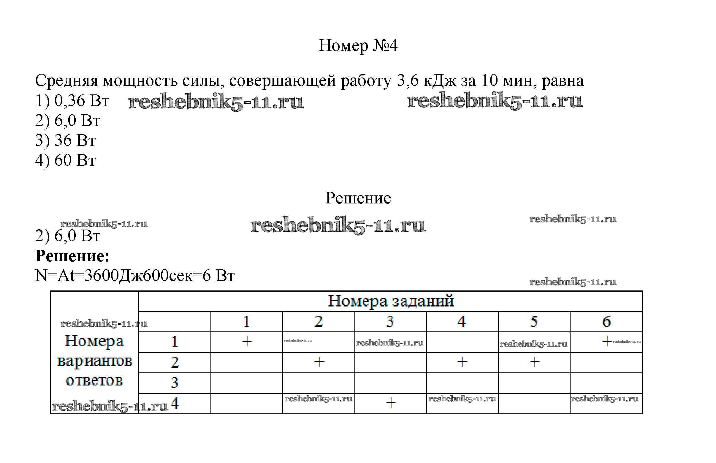 Готовая домашняя работа с ответами по Физике за 7 класс Ханнанова, Ханнанов Рабочая тетрадь Вертикаль Дрофа 2016 ФГОС - Тренировочный тест 8 "Работа, мощность, энергия. Простые механизмы" 4