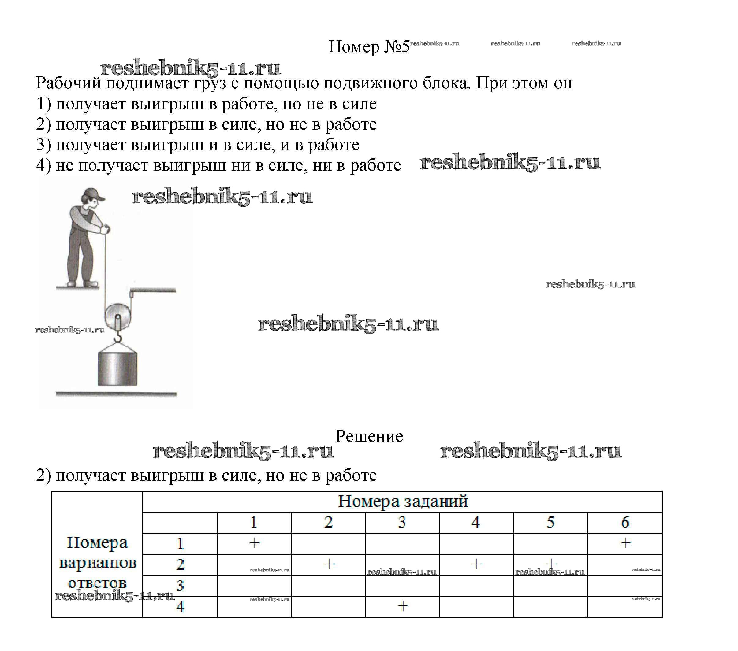 Готовая домашняя работа с ответами по Физике за 7 класс Ханнанова, Ханнанов Рабочая тетрадь Вертикаль Дрофа 2016 ФГОС - Тренировочный тест 8 "Работа, мощность, энергия. Простые механизмы" 5