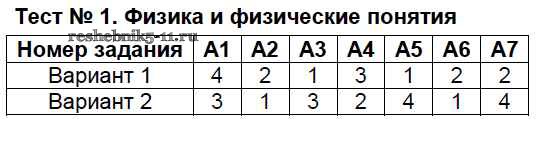Готовая домашняя работа с ответами по Физике за 7 класс Бобошина Контрольно-измерительные материалы (КИМ) Экзамен 2014 ФГОС - Тесты Тест №1. Физика и физические понятия