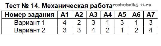 Готовая домашняя работа с ответами по Физике за 7 класс Бобошина Контрольно-измерительные материалы (КИМ) Экзамен 2014 ФГОС - Тесты Тест №14. Механическая работа