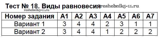 Тест №18. Виды равновесия