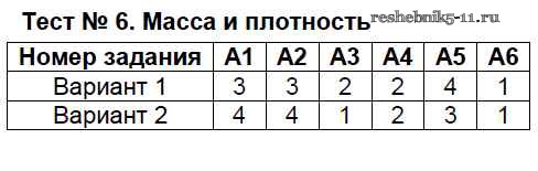 Готовая домашняя работа с ответами по Физике за 7 класс Бобошина Контрольно-измерительные материалы (КИМ) Экзамен 2014 ФГОС - Тесты Тест №6. Масса и плотность