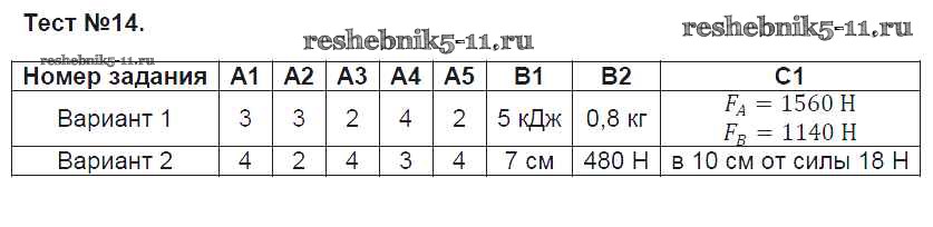 Готовая домашняя работа с ответами по Физике за 7 класс Зорин Контрольно-измерительные материалы (КИМ) ВАКО 2017 ФГОС - Тесты Тест-14