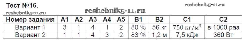 Готовая домашняя работа с ответами по Физике за 7 класс Зорин Контрольно-измерительные материалы (КИМ) ВАКО 2017 ФГОС - Тесты Тест-16