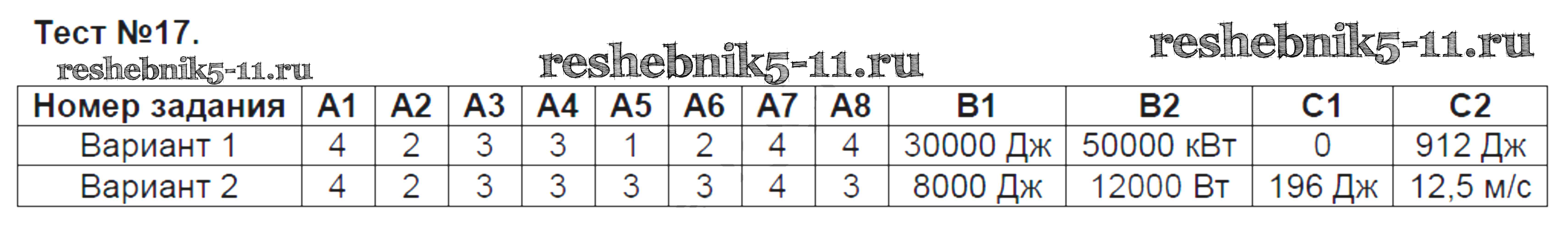 Готовая домашняя работа с ответами по Физике за 7 класс Зорин Контрольно-измерительные материалы (КИМ) ВАКО 2017 ФГОС - Тесты Тест-17