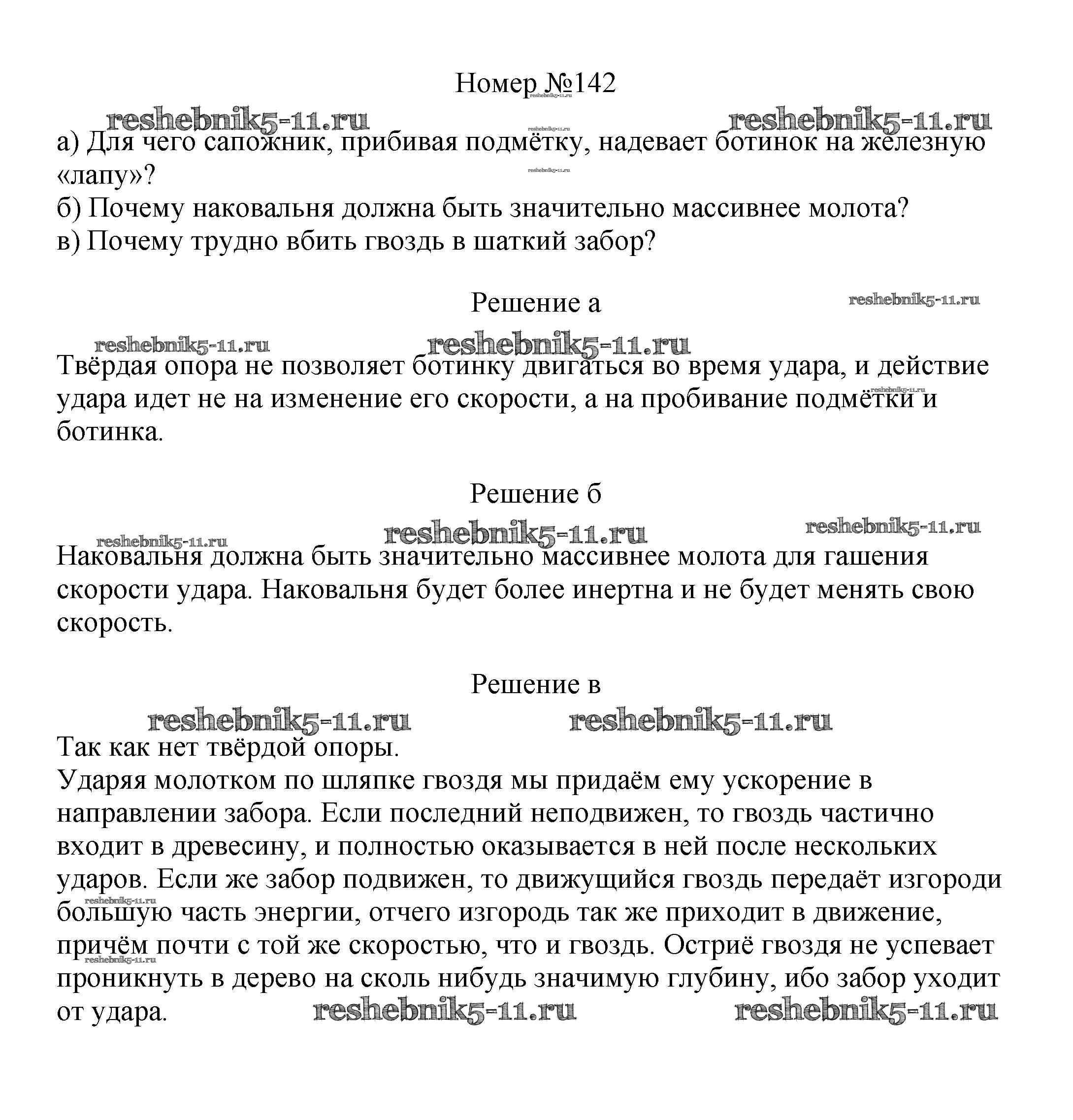 Готовая домашняя работа с ответами по Физике за 7, 8, 9 класс Марон, Позойский Сборник вопросов и задач Вертикаль Дрофа 2013 ФГОС - 7 класс 142