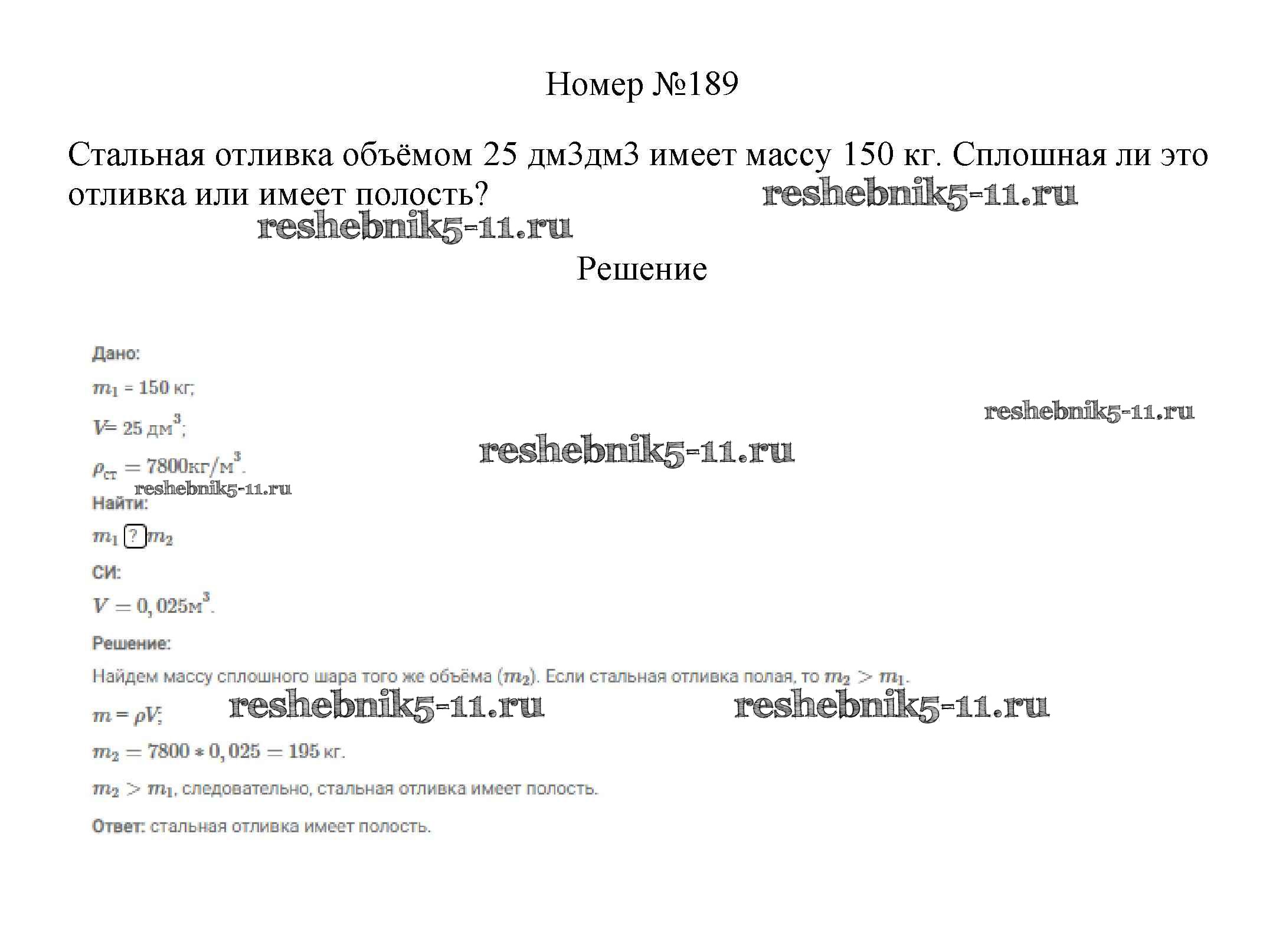 Готовая домашняя работа с ответами по Физике за 7, 8, 9 класс Марон, Позойский Сборник вопросов и задач Вертикаль Дрофа 2013 ФГОС - 7 класс 189