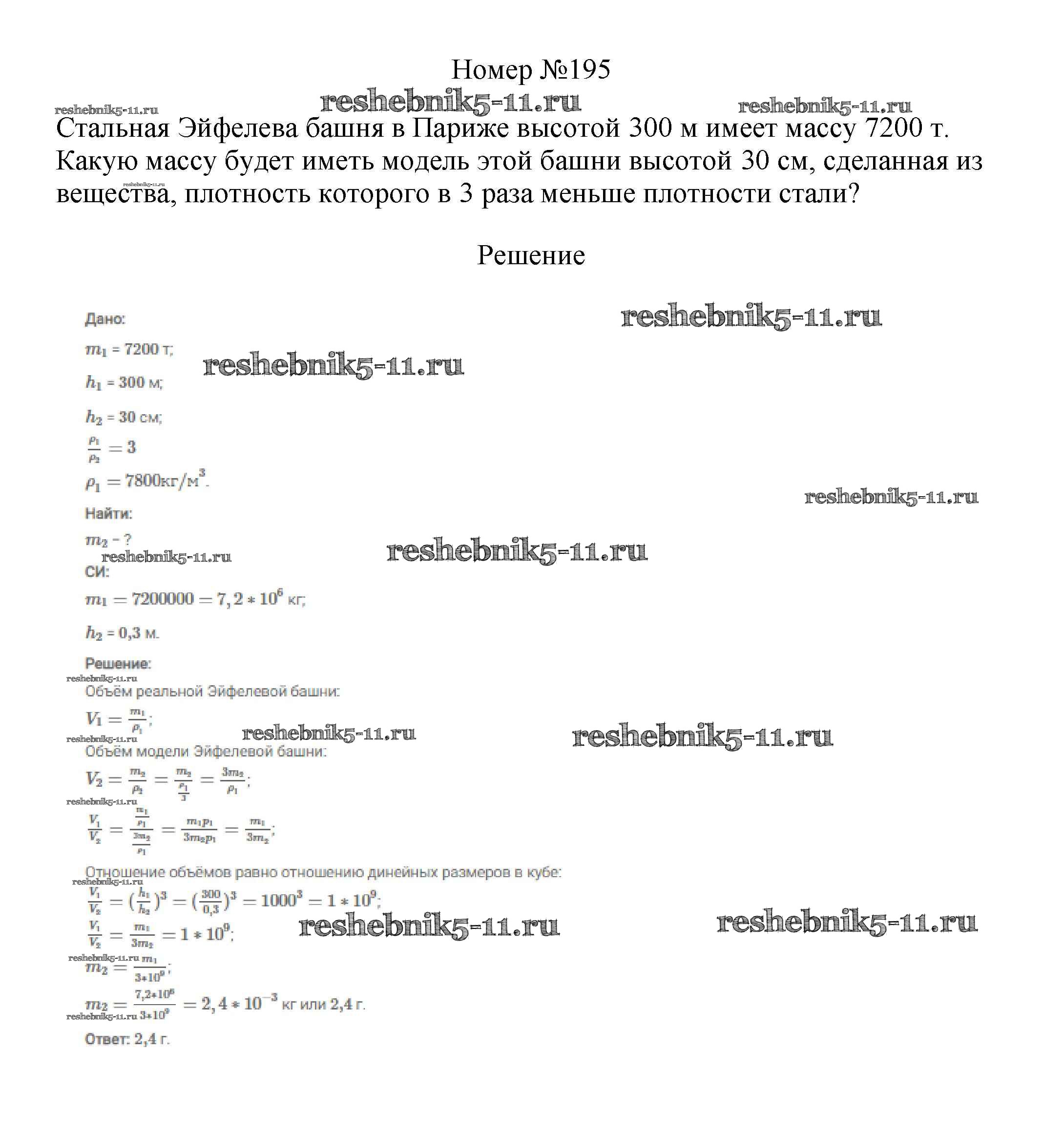 Готовая домашняя работа с ответами по Физике за 7, 8, 9 класс Марон, Позойский Сборник вопросов и задач Вертикаль Дрофа 2013 ФГОС - 7 класс 195