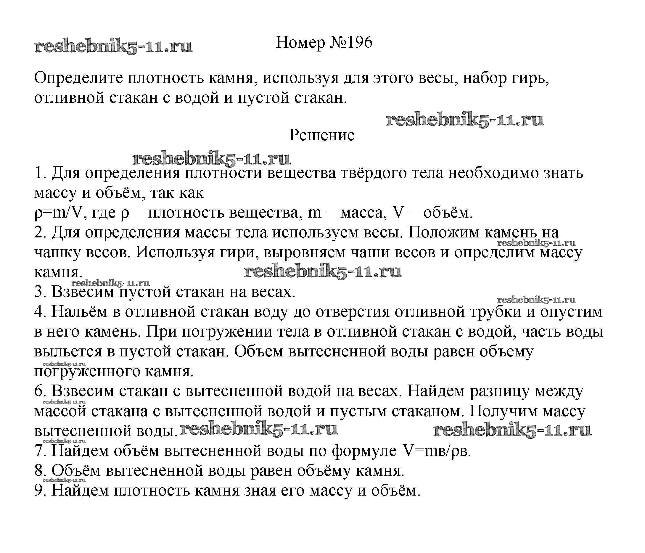 Готовая домашняя работа с ответами по Физике за 7, 8, 9 класс Марон, Позойский Сборник вопросов и задач Вертикаль Дрофа 2013 ФГОС - 7 класс 196
