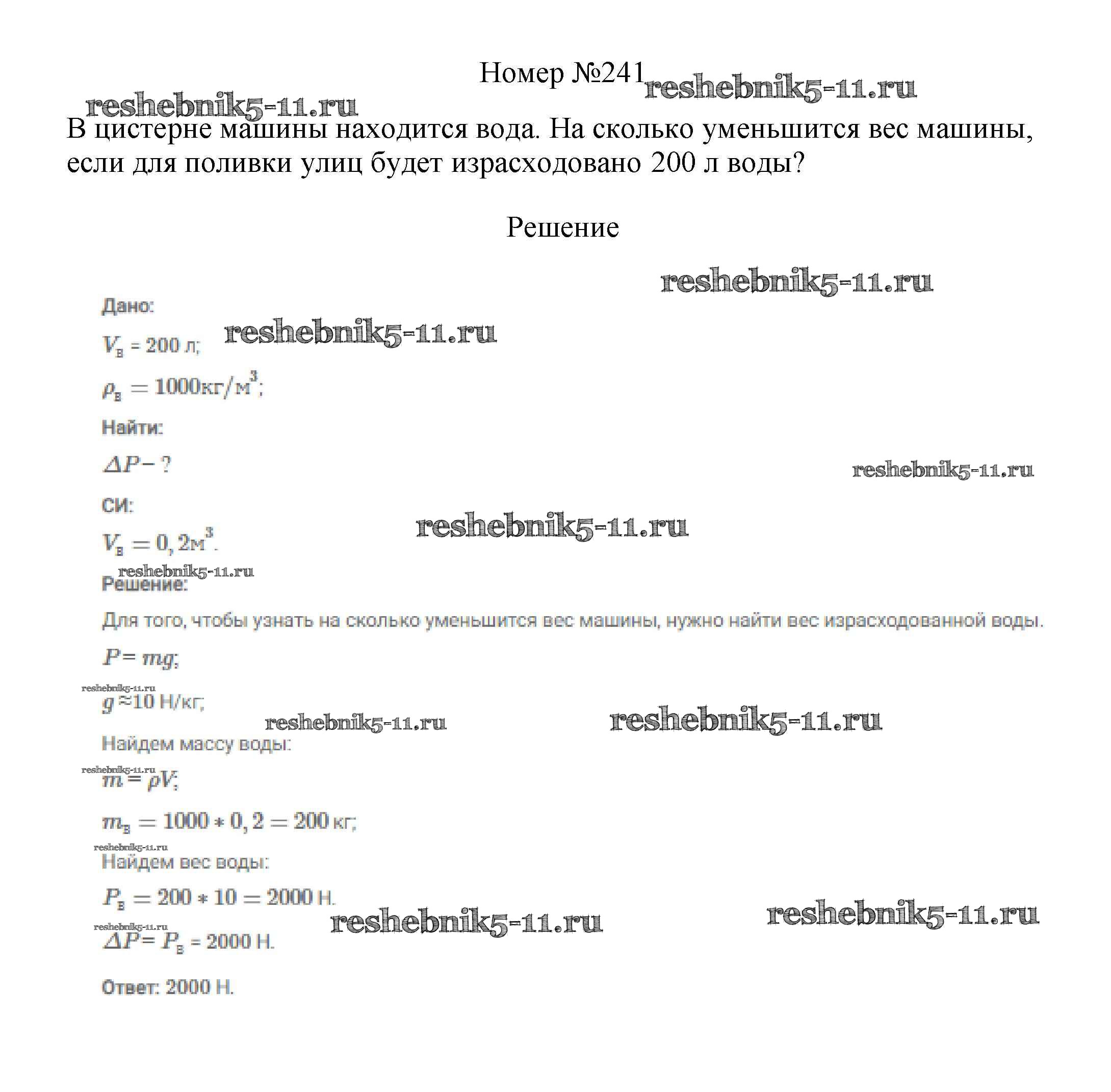 Готовая домашняя работа с ответами по Физике за 7, 8, 9 класс Марон, Позойский Сборник вопросов и задач Вертикаль Дрофа 2013 ФГОС - 7 класс 241