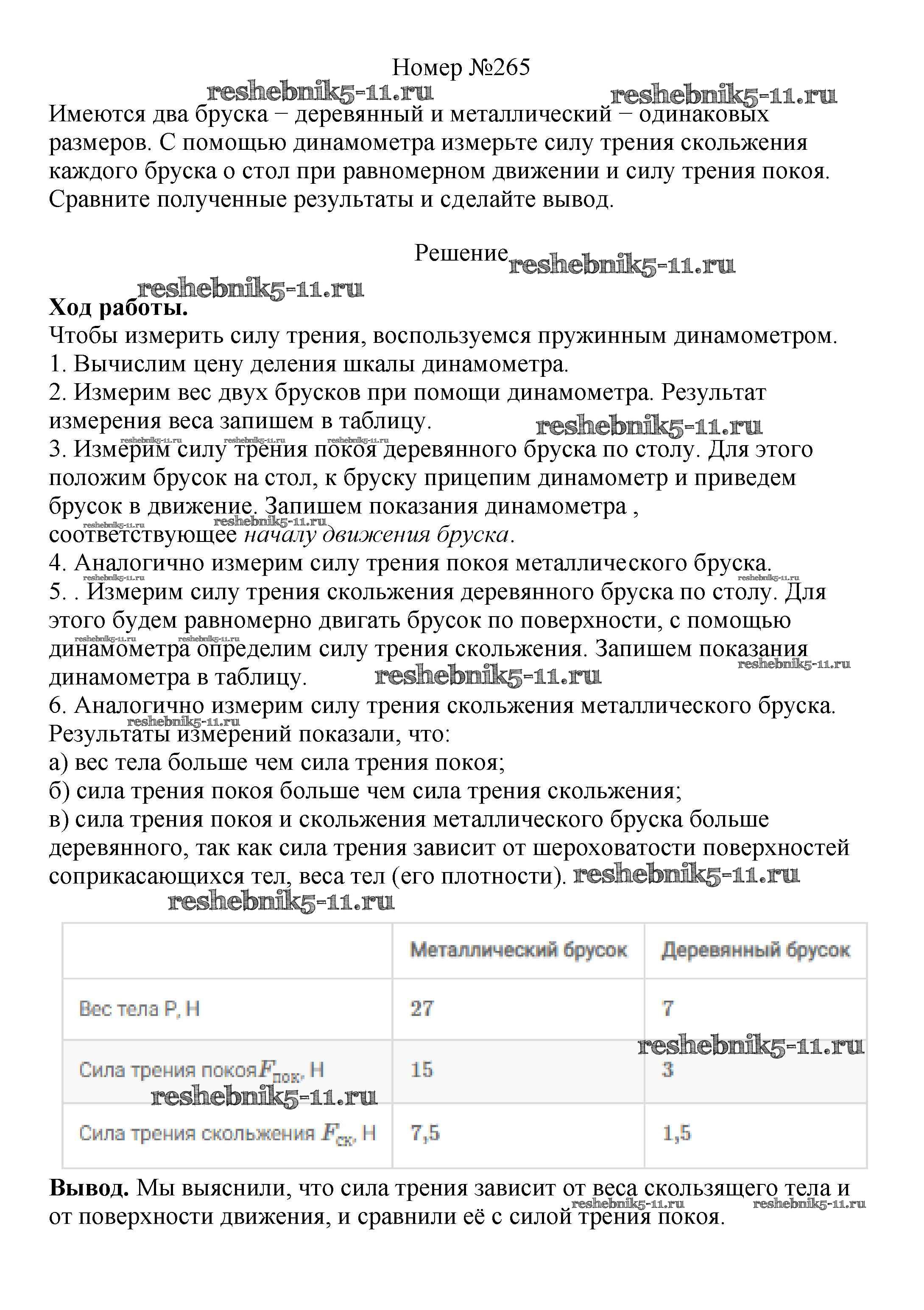 Готовая домашняя работа с ответами по Физике за 7, 8, 9 класс Марон, Позойский Сборник вопросов и задач Вертикаль Дрофа 2013 ФГОС - 7 класс 265