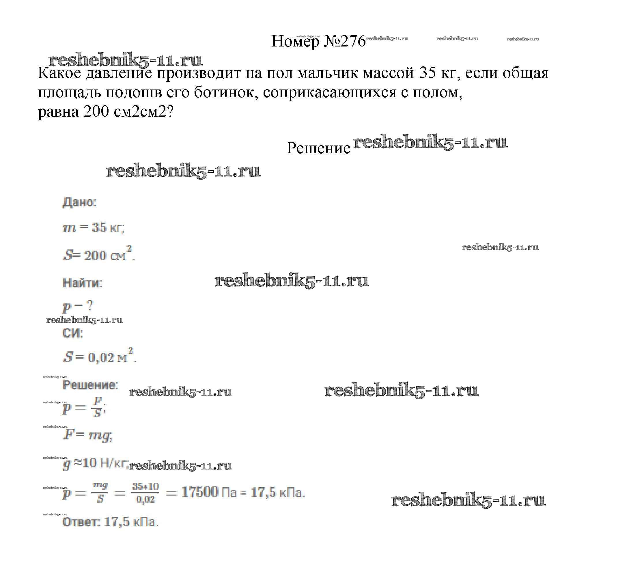 Готовая домашняя работа с ответами по Физике за 7, 8, 9 класс Марон, Позойский Сборник вопросов и задач Вертикаль Дрофа 2013 ФГОС - 7 класс 276
