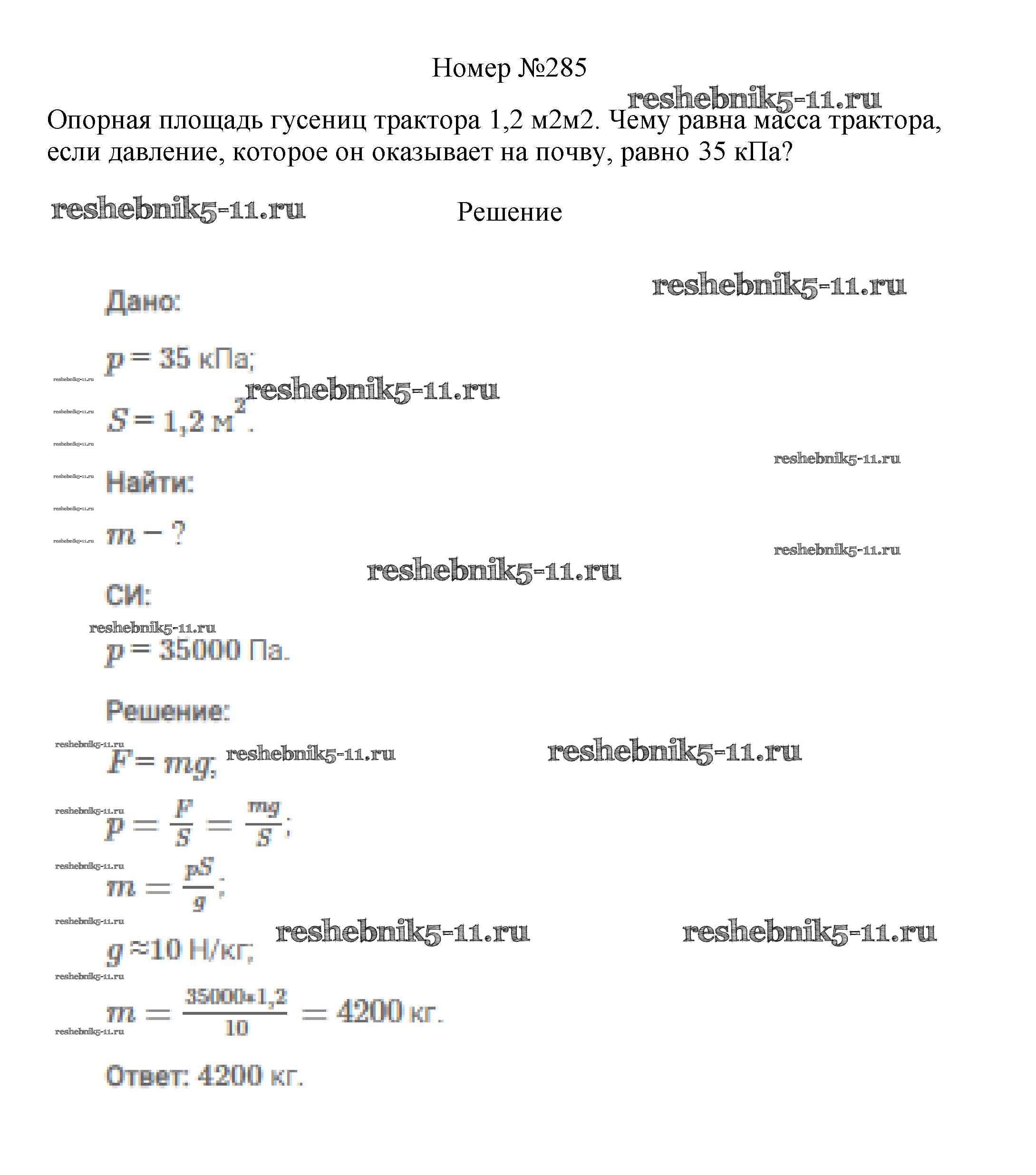Готовая домашняя работа с ответами по Физике за 7, 8, 9 класс Марон, Позойский Сборник вопросов и задач Вертикаль Дрофа 2013 ФГОС - 7 класс 285