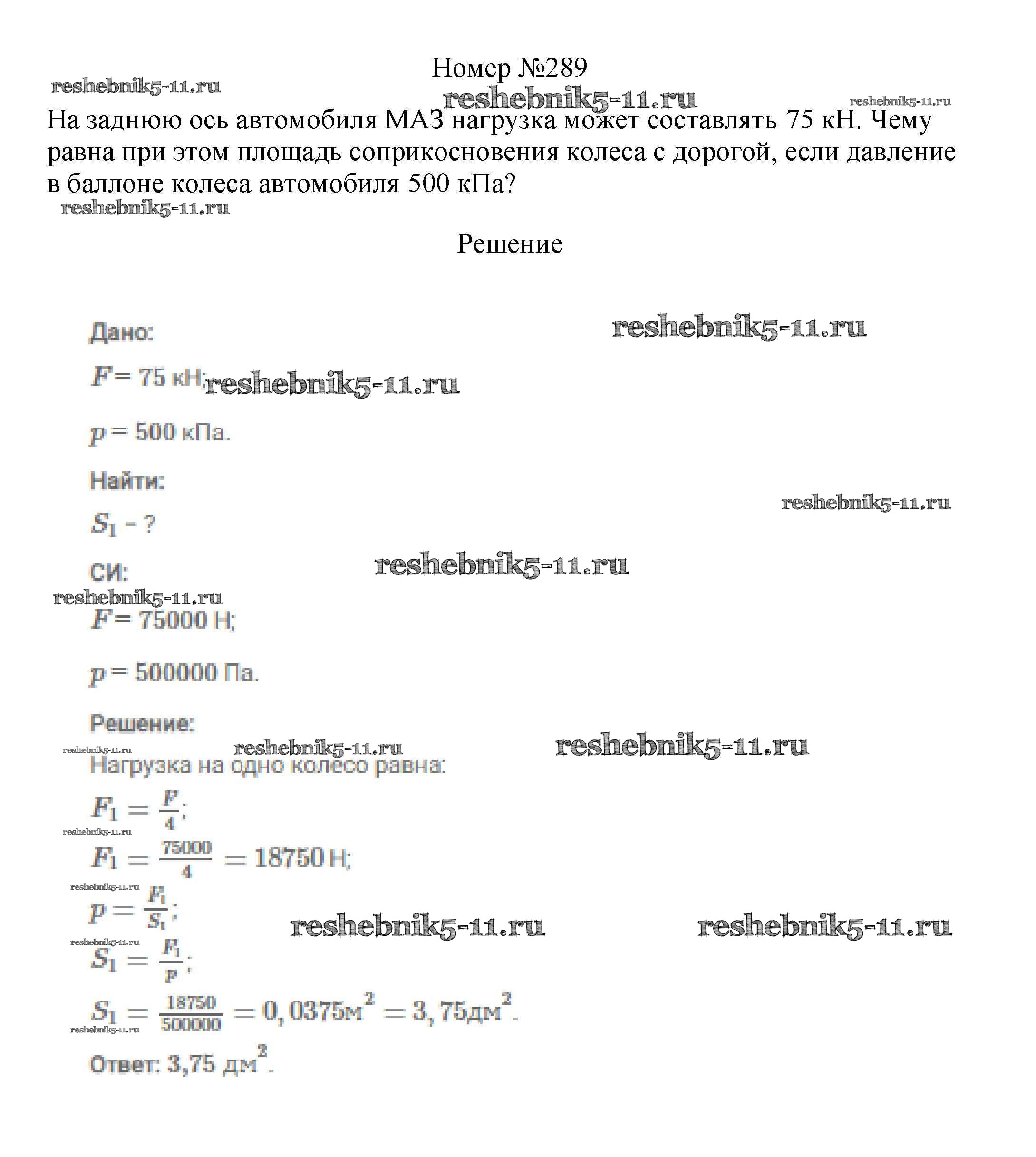 Готовая домашняя работа с ответами по Физике за 7, 8, 9 класс Марон, Позойский Сборник вопросов и задач Вертикаль Дрофа 2013 ФГОС - 7 класс 289