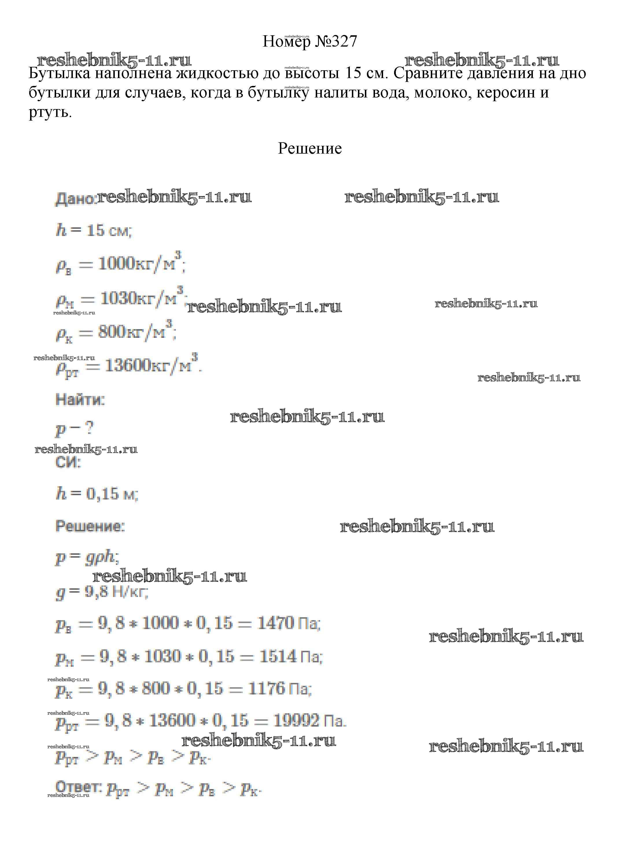 Готовая домашняя работа с ответами по Физике за 7, 8, 9 класс Марон, Позойский Сборник вопросов и задач Вертикаль Дрофа 2013 ФГОС - 7 класс 327