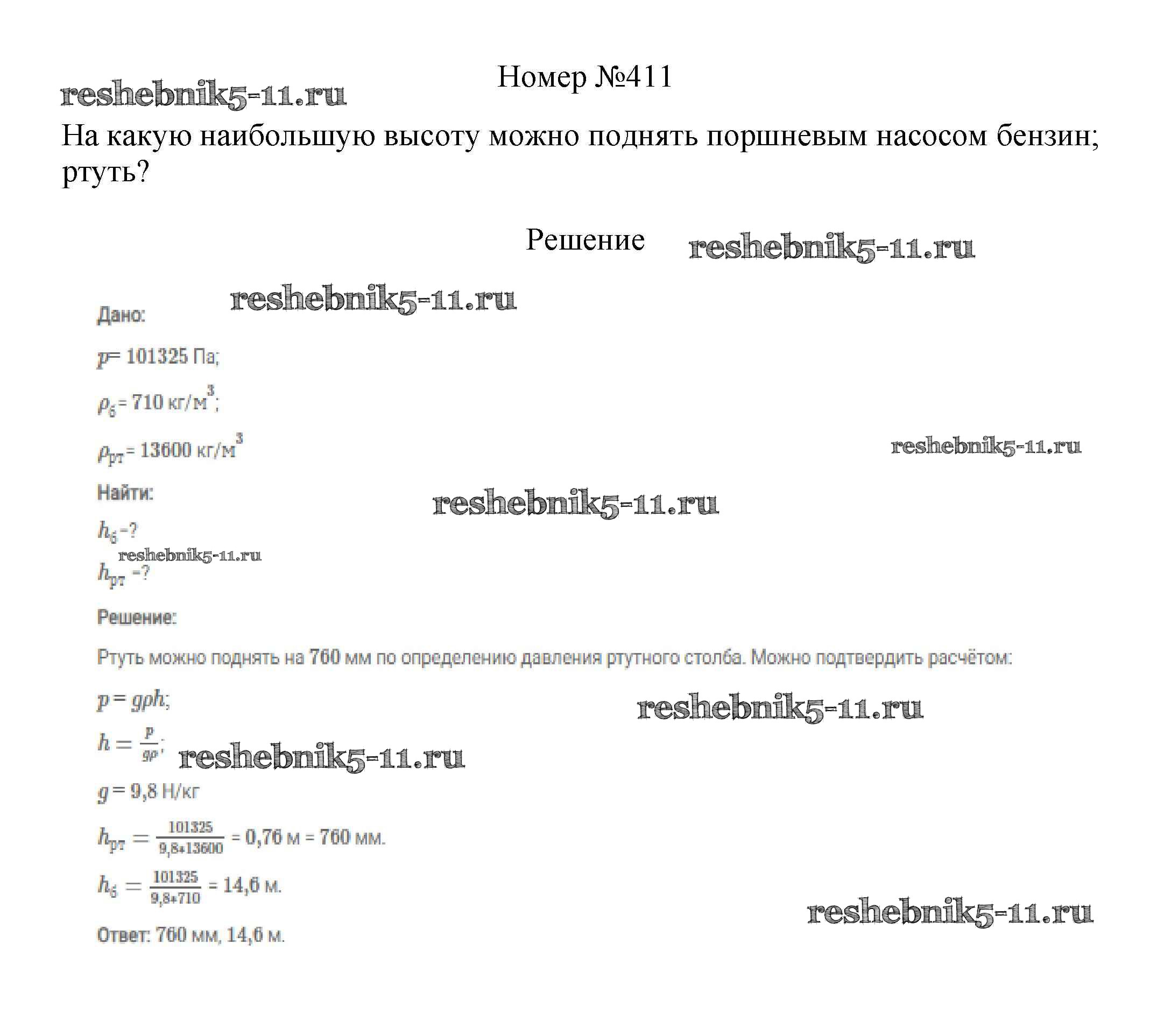 Готовая домашняя работа с ответами по Физике за 7, 8, 9 класс Марон, Позойский Сборник вопросов и задач Вертикаль Дрофа 2013 ФГОС - 7 класс 411