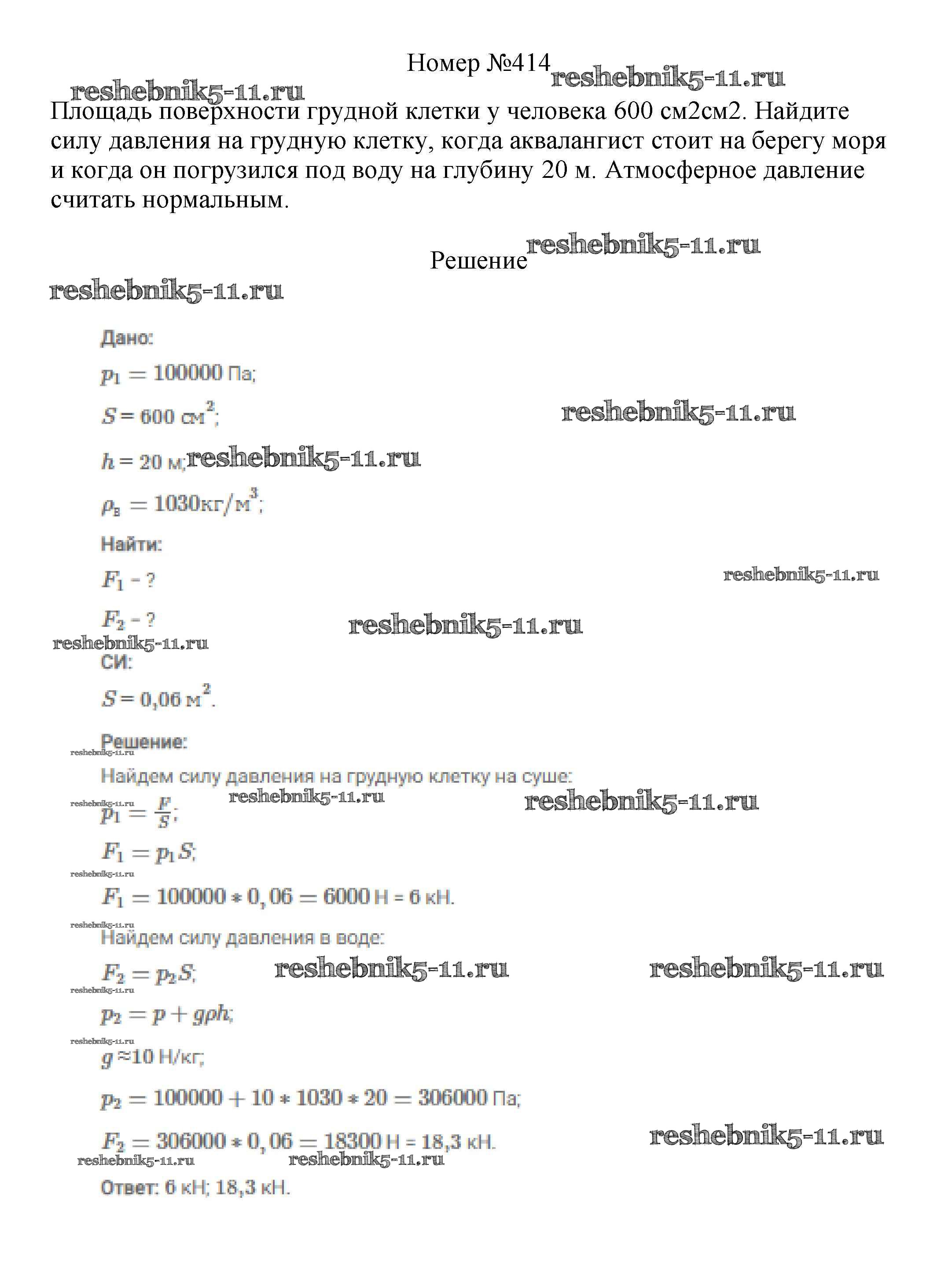Готовая домашняя работа с ответами по Физике за 7, 8, 9 класс Марон, Позойский Сборник вопросов и задач Вертикаль Дрофа 2013 ФГОС - 7 класс 414