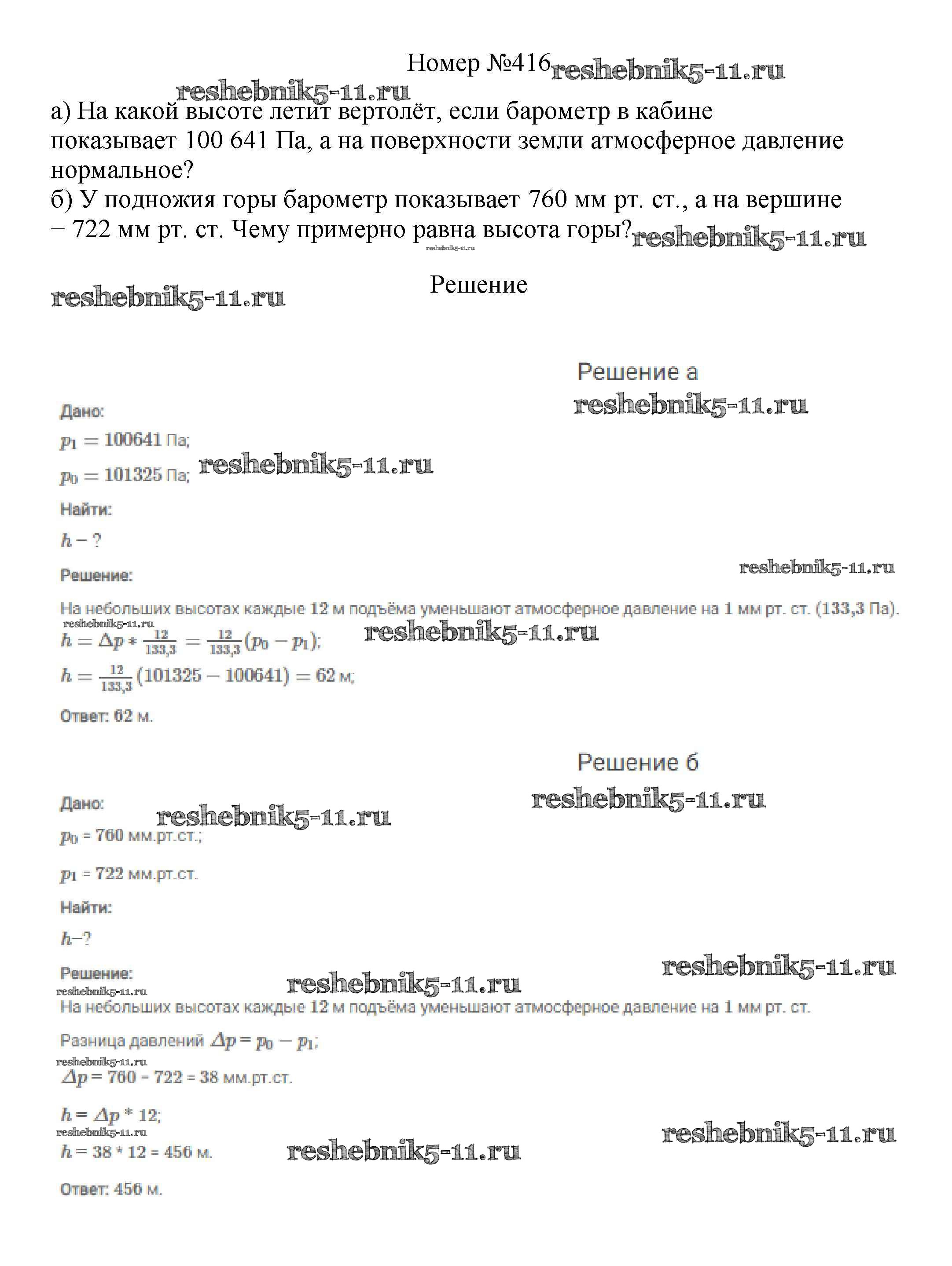 Готовая домашняя работа с ответами по Физике за 7, 8, 9 класс Марон, Позойский Сборник вопросов и задач Вертикаль Дрофа 2013 ФГОС - 7 класс 416