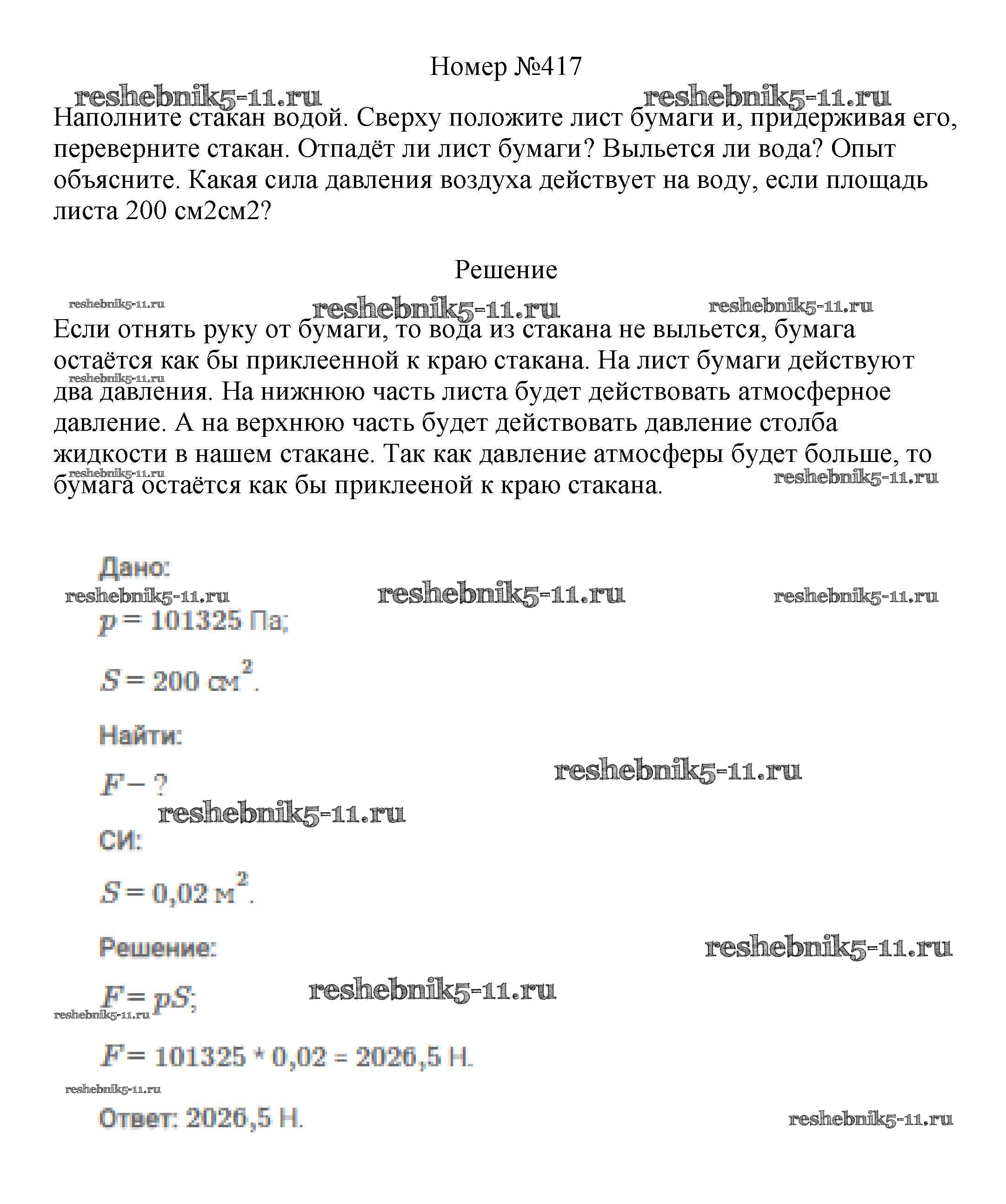 Готовая домашняя работа с ответами по Физике за 7, 8, 9 класс Марон, Позойский Сборник вопросов и задач Вертикаль Дрофа 2013 ФГОС - 7 класс 417
