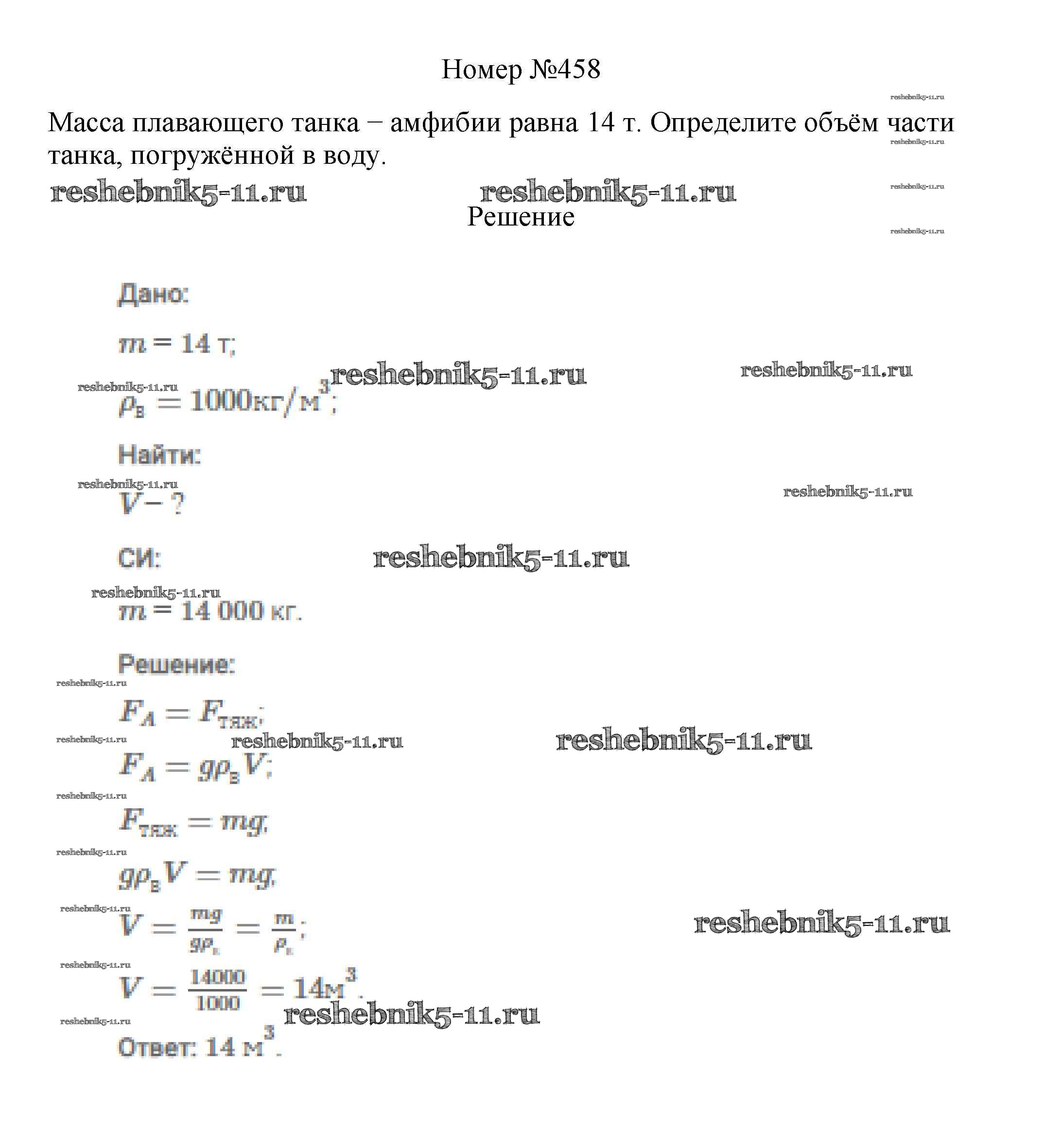 Готовая домашняя работа с ответами по Физике за 7, 8, 9 класс Марон, Позойский Сборник вопросов и задач Вертикаль Дрофа 2013 ФГОС - 7 класс 458