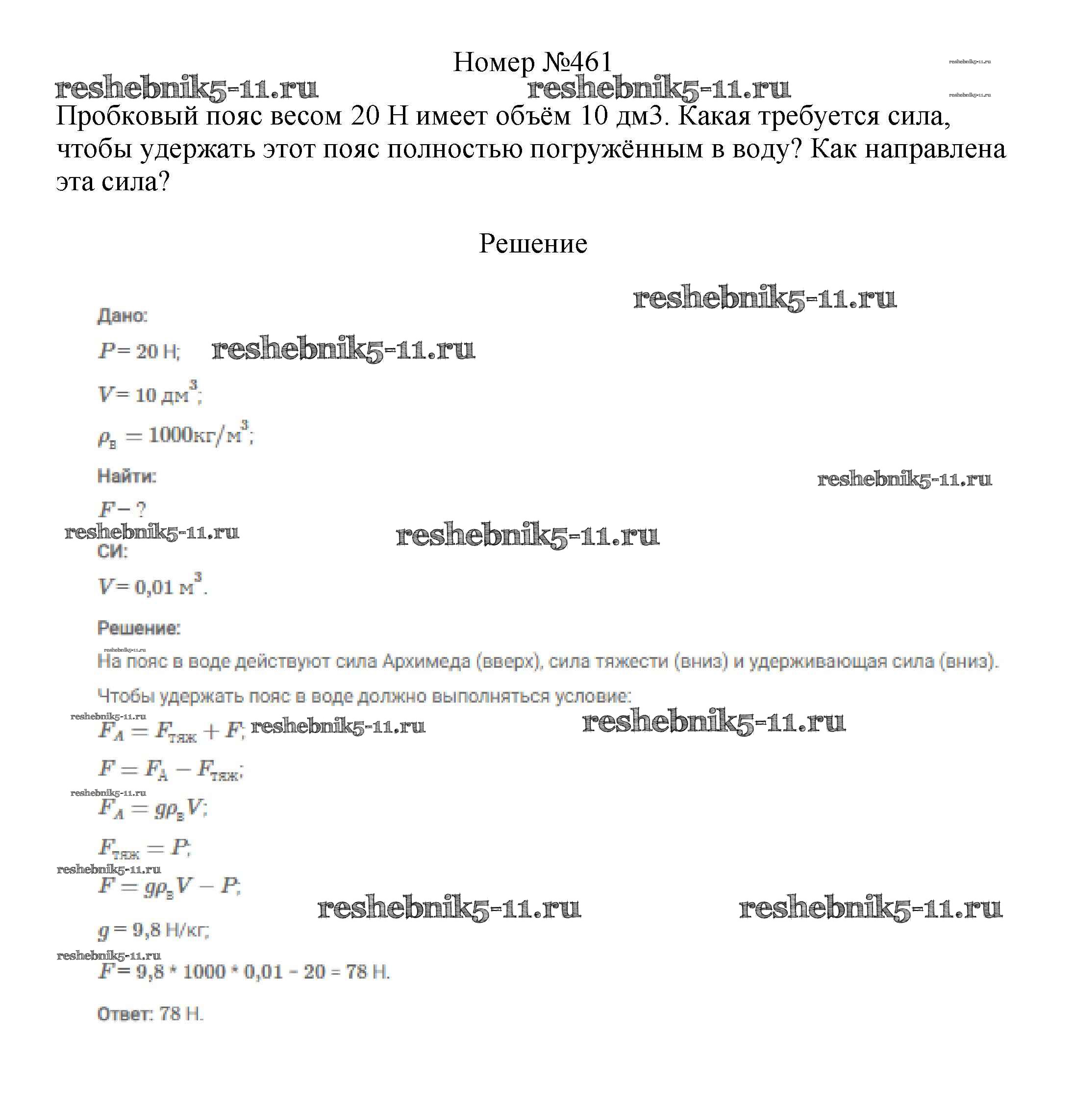 Готовая домашняя работа с ответами по Физике за 7, 8, 9 класс Марон, Позойский Сборник вопросов и задач Вертикаль Дрофа 2013 ФГОС - 7 класс 461