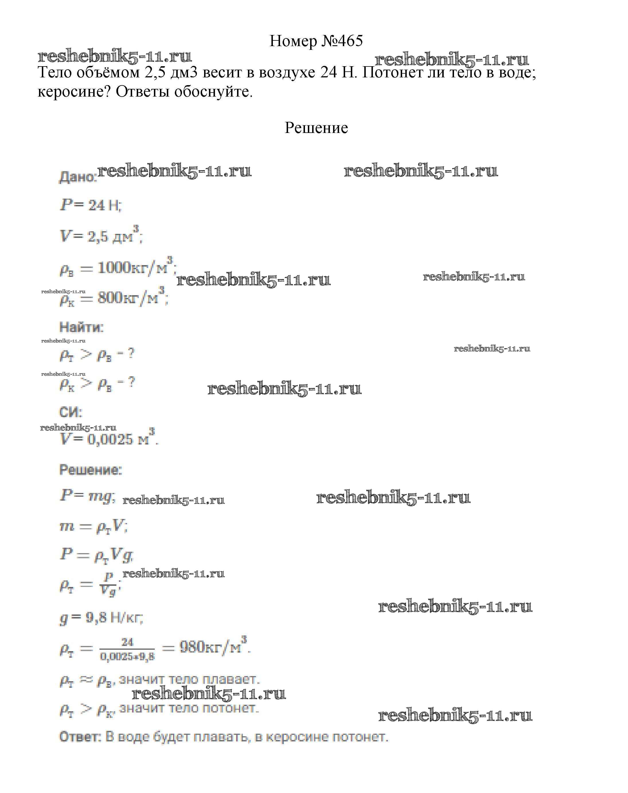 Готовая домашняя работа с ответами по Физике за 7, 8, 9 класс Марон, Позойский Сборник вопросов и задач Вертикаль Дрофа 2013 ФГОС - 7 класс 465